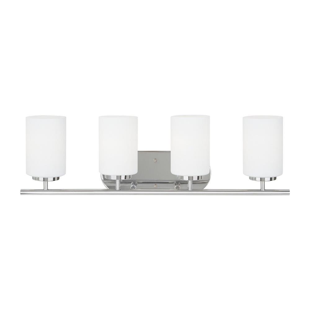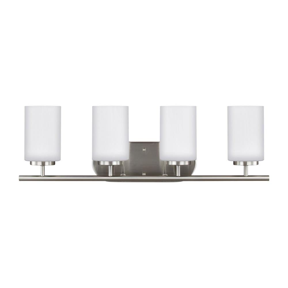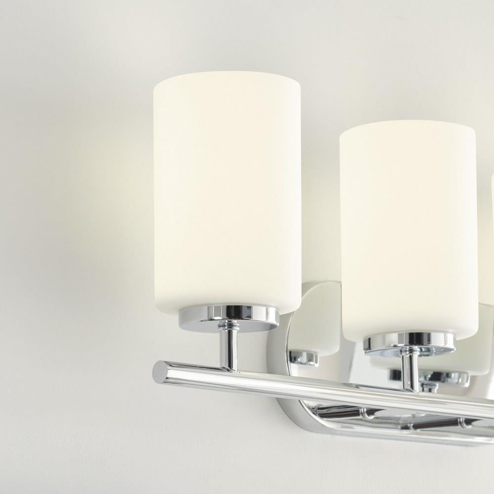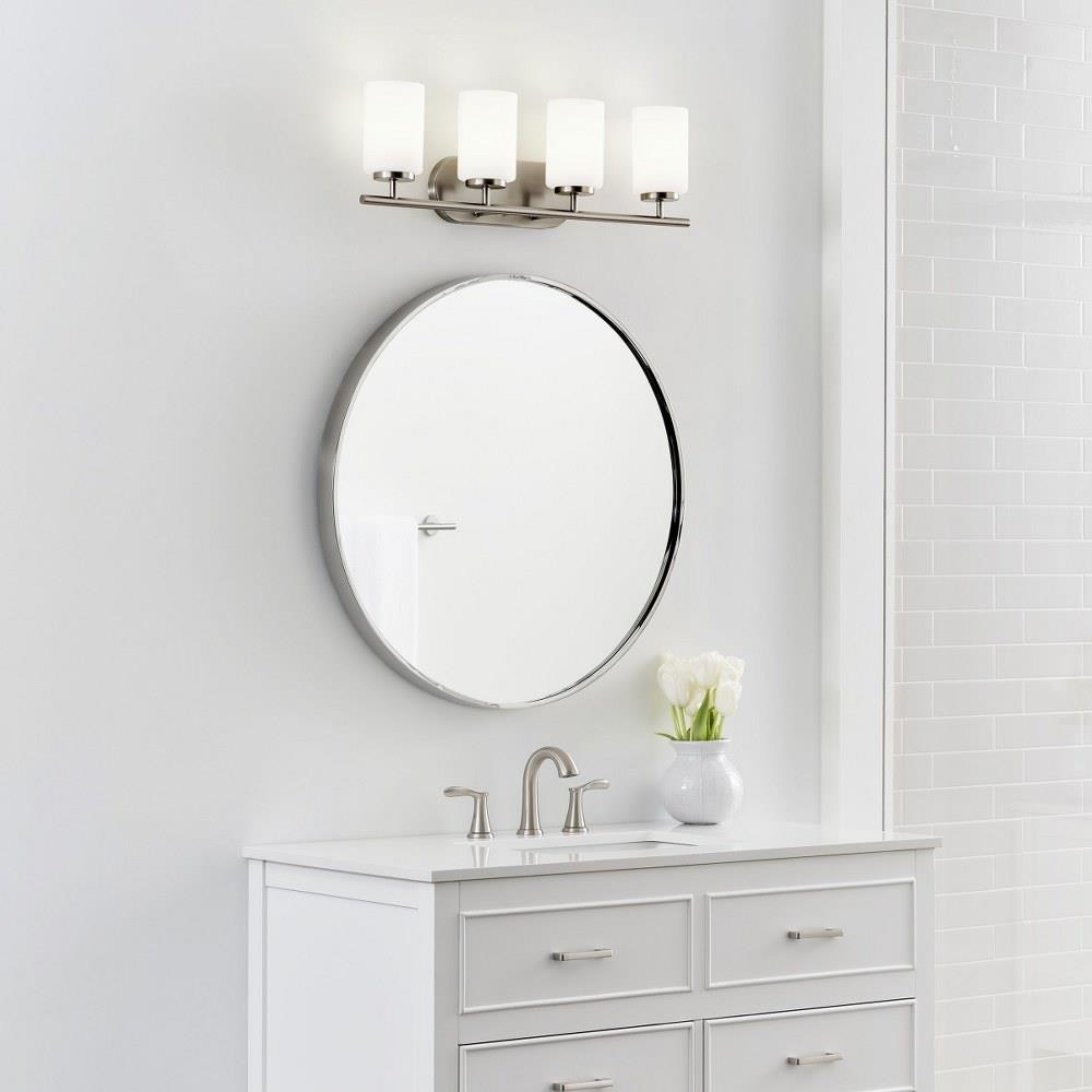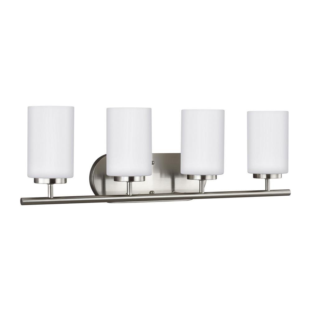 The Oslo four light vanity fixture in bronze is an ENERGY STARĀ® qualified lighting fixture that uses LED bulbs to save you both time and money. The Oslo lighting collection by is a sleek design, with smooth and clean lines. The Opal Etched glass adds to this collection's contemporary and minimalist character. Offered in Chrome, Brushed Nickel, Burnt Sienna and textured Blacksmith finishes, the collection includes nine-, five-, and three-light chandeliers, pendants in four sizes, both flush and semi-flush ceiling fixtures, as well as one-, two-, three- and four-light wall/bath fixtures. Both incandescent lamping and ENERGY STAR-qualified LED lamping are available. All fixtures are California Title 24 compliant.Product Features and Benefits