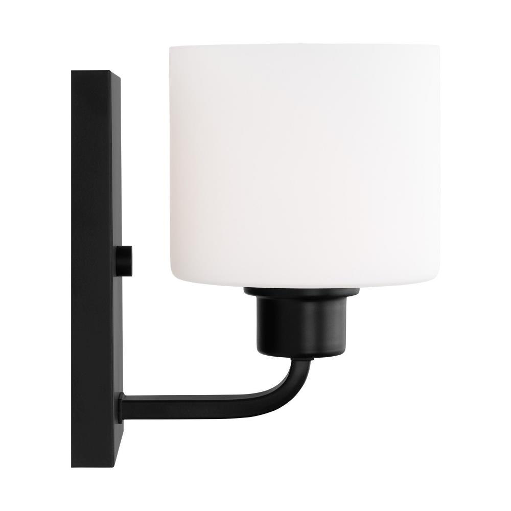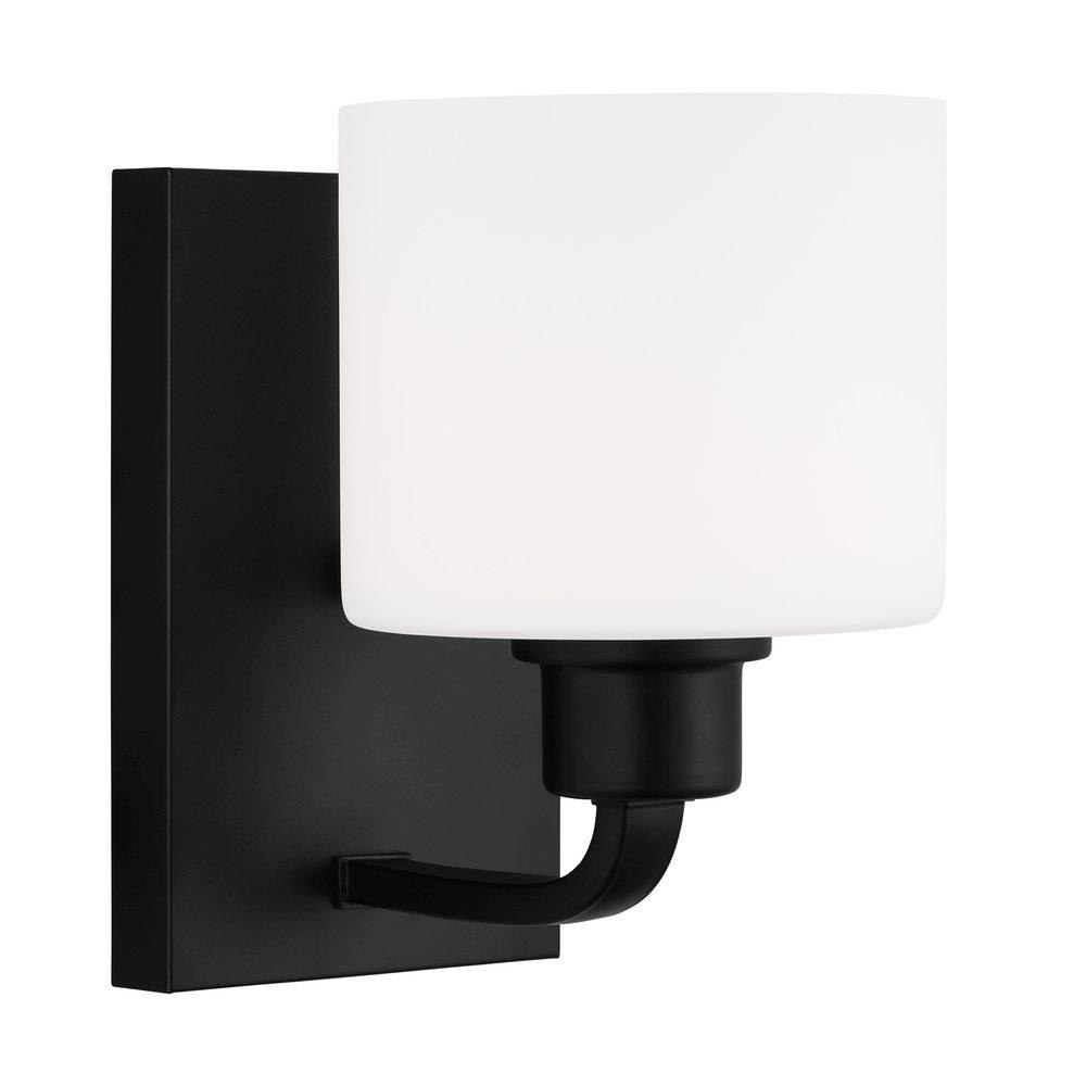 The Canfield one light wall sconce in Midnight Black provides abundant light for your bath vanity, while adding a layer of today's style to your interior design. Behind every seemingly simple design lies unerring attention to restraint and obsessive attention to the tiniest details. The Canfield collection by draws on the modernist traditions of "less is more". Essential functional elements dictate the aesthetics, and clean lines prevail to the soft glow of light diffused through finely etched glass diffusors. Canfield offers a "whole home" lighting solution; offering lighting in every imaginable category from the auspicious 9 light 2-tier chandelier, to the concise mini-pendant and one-light sconces. The collection is available in hand brushed Bronze for a warm, tactile, almost Craftsman design style, or Brushed Nickel and Chrome finishes to emphasize the more architectural elements of your interior.Product Features and Benefits