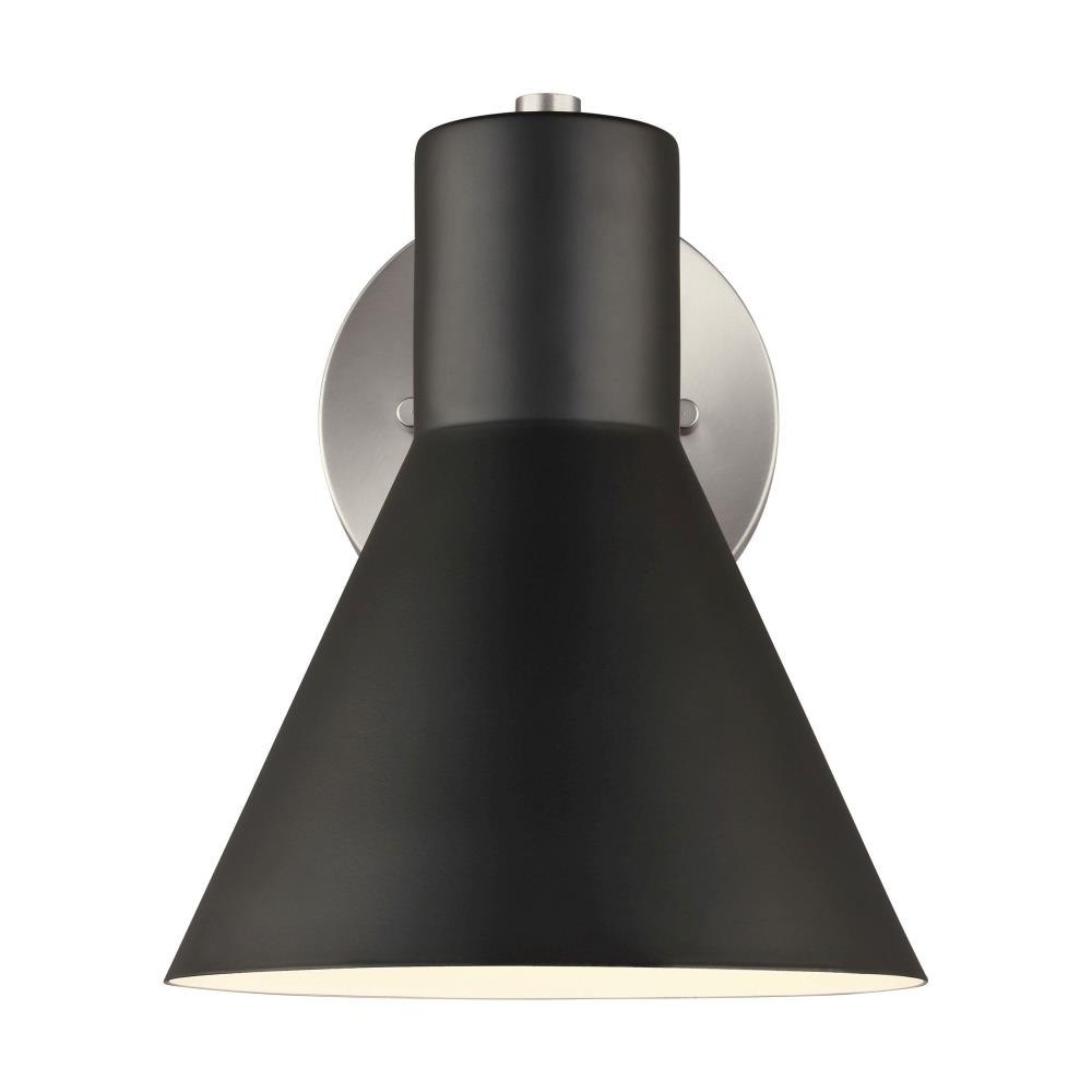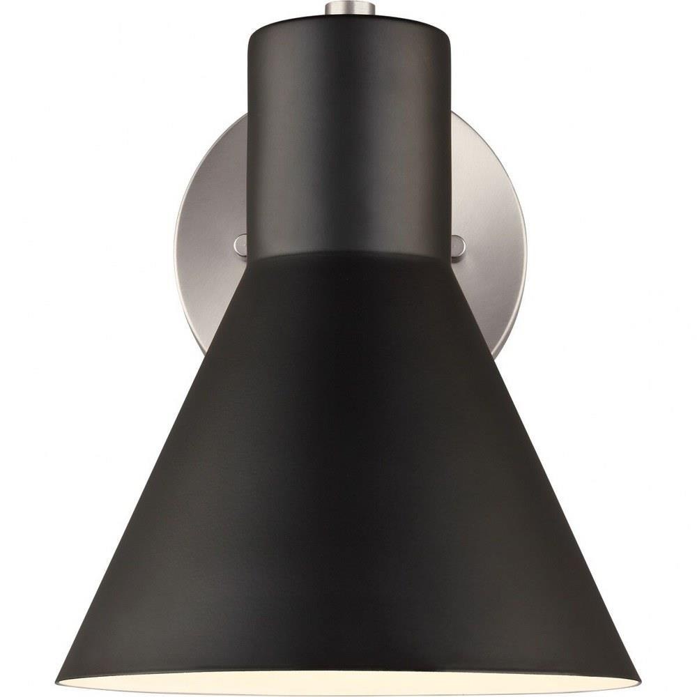 The Towner one light wall sconce in brushed nickel is an ENERGY STAR® qualified lighting fixture that uses LED bulbs to save you both time and money. The Towner lighting collection by brings mid-century, retro style to the traditional circular silhouette, creating a bold statement that would accent any space in your home. The conical light shades deliver a fun design statement along with the textured cloth cords, which are adjustable for leveling. These fixtures are ideal for dining room lighting, living room lighting and kitchen lighting. The assortment includes three-, five- and seven-light chandeliers, three- and five-light cluster pendants, eight-light island pendants, one-light mini pendants, and one-light wall sconces. The Towner Collection is available in two finishes, Satin Bronze and Brushed Nickel to complete the look. All fixtures are available as ENERGY STAR®-qualified and California Title 24 compliant.