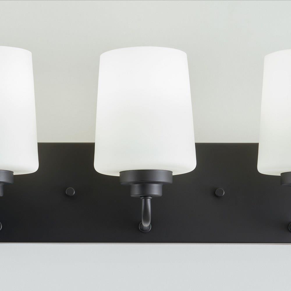 Windom blends traditional design aesthetics with a touch of contemporary appeal. Etched Opal glass sits atop the graceful curving arms giving this family its transitional style. Available in four finishes.