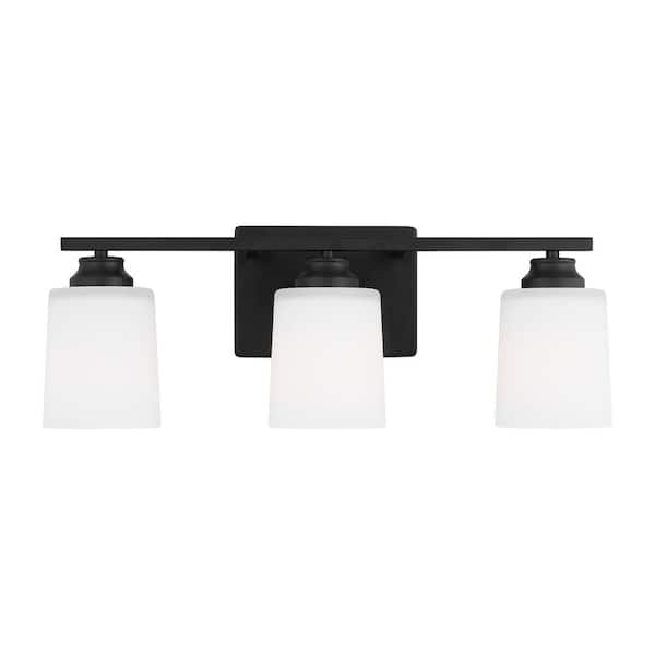 Vinton 20.75 in. 3-Light Midnight Black Bathroom Vanity Light with Etched White Glass Shades