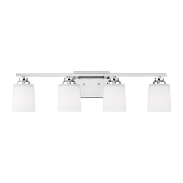Vinton 29 in. 4-Light Chrome Bathroom Vanity Light with Etched White Glass Shades and LED Light Bulbs