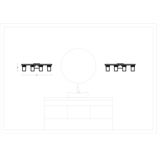 Exuding horizontal lines and a broad overhang, this versatile 4-light vanity complements both traditional and modern spaces alike. Crafted from steel in a neutral solid finish, it features a rectangular backplate, a thin support arm, and four frosted glass cylindrical shades. Inside each shade, this fixture accommodates a 100W bulb (sold separately). We love that it's compatible with dimmer switches, and can even be mounted either up or down to help you get just the right look.