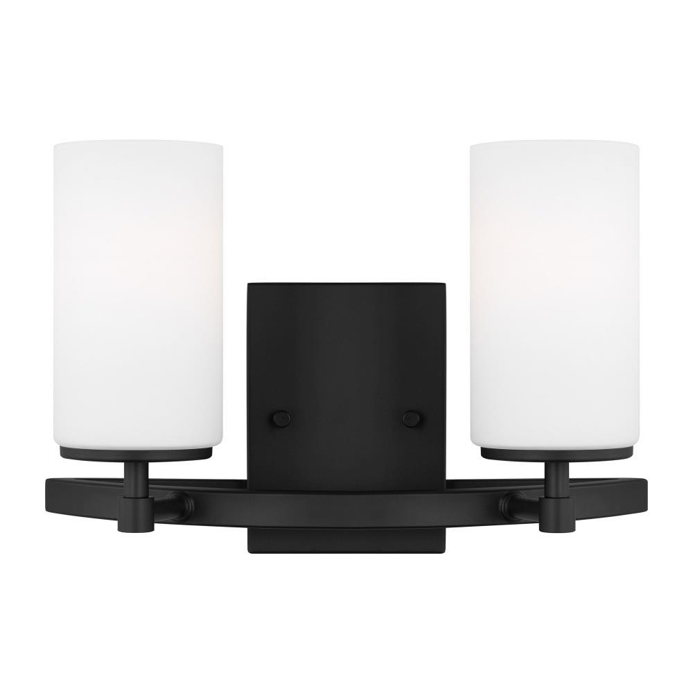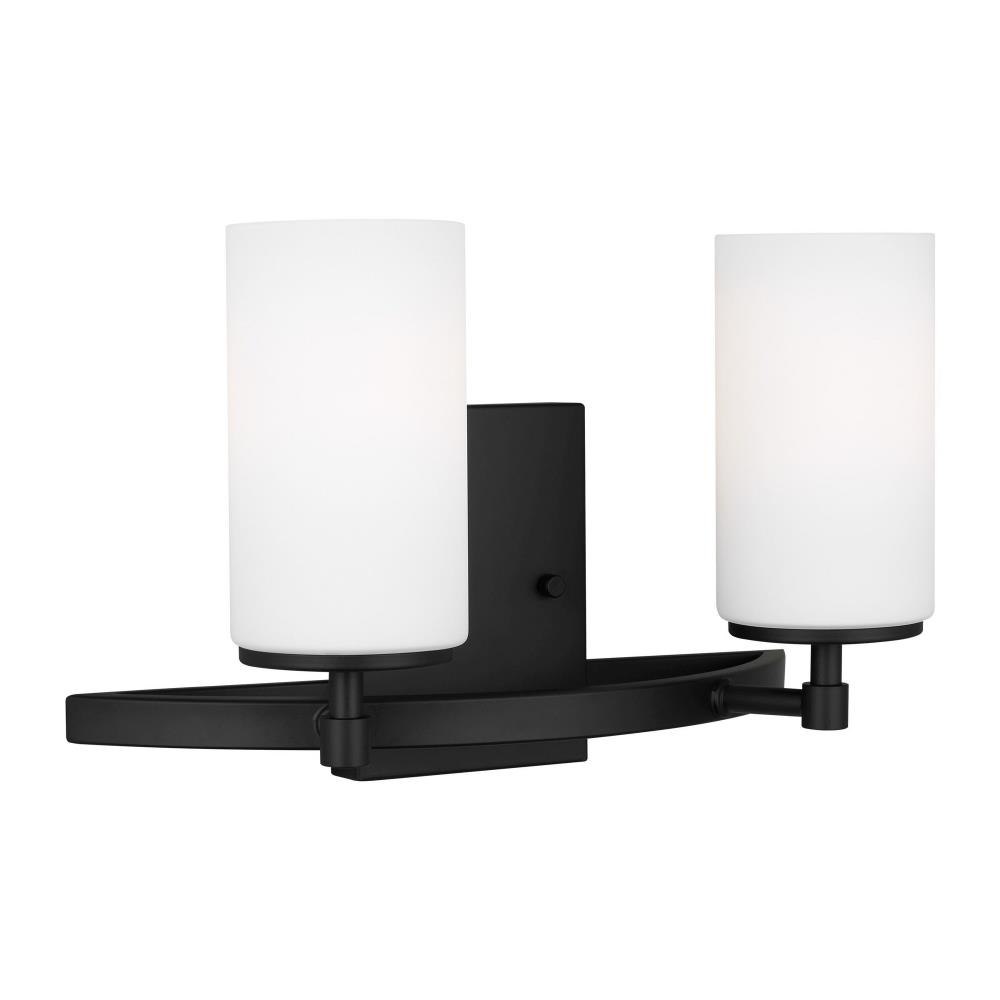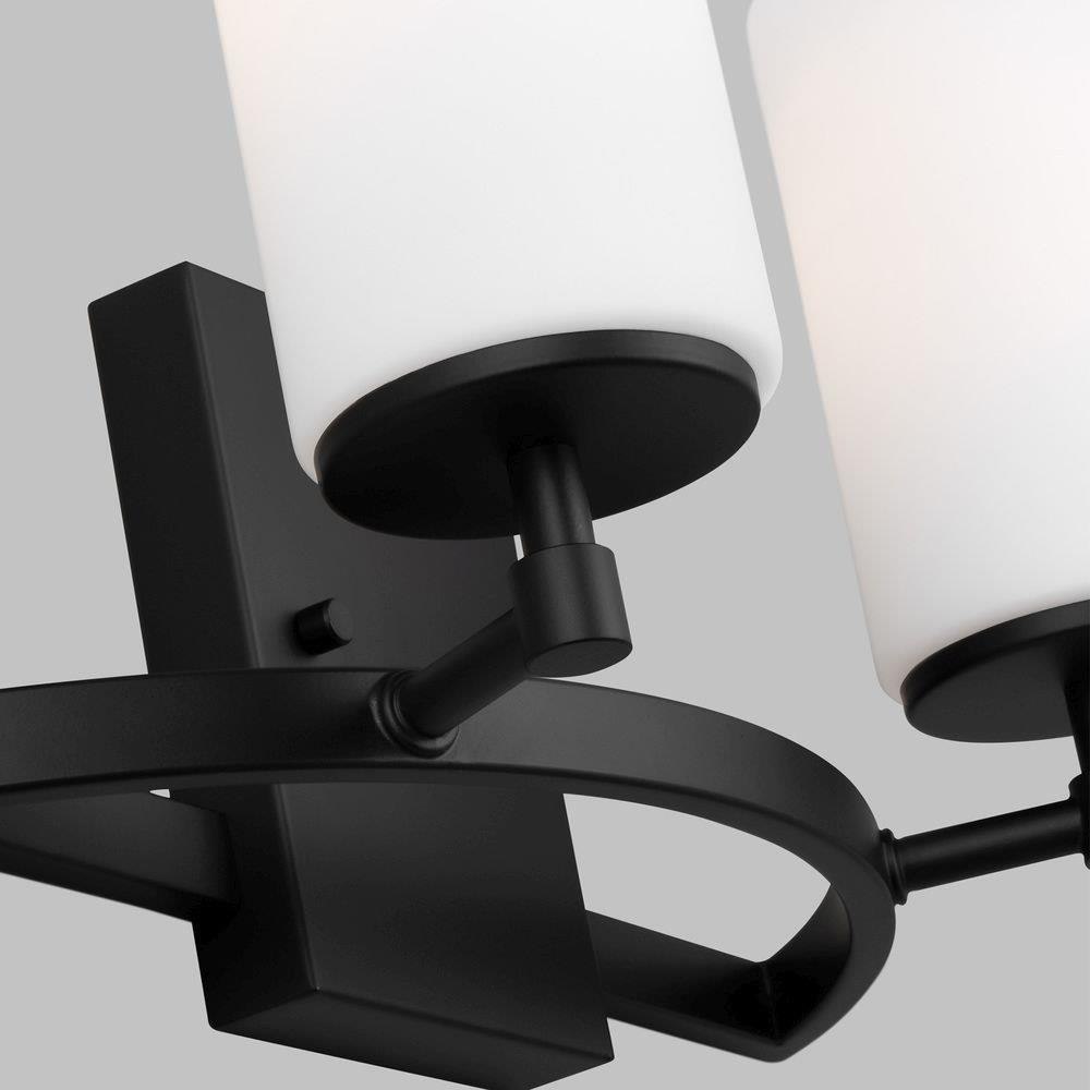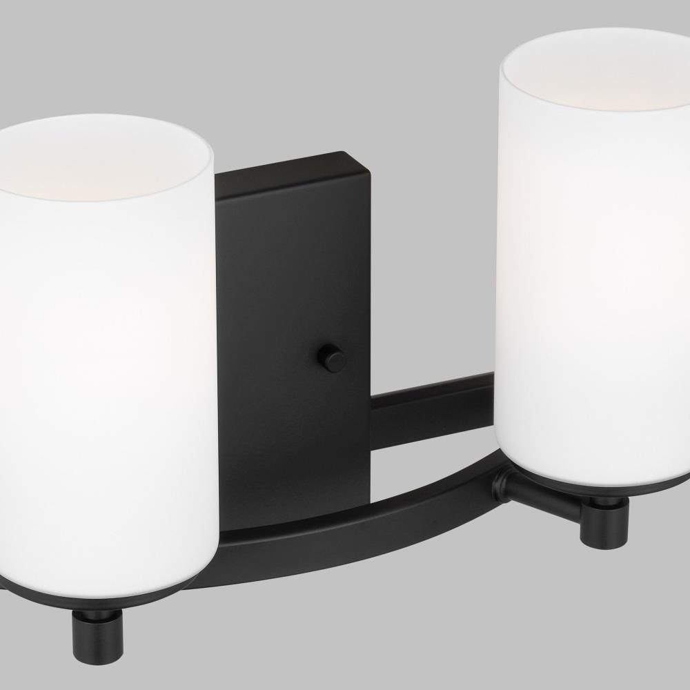 The Alturas two light vanity fixture in Midnight Black provides abundant light for your bath vanity, while adding a layer of today's style to your interior design. The silhouette of the modern Alturas lighting collection by features an interlocking, spherical steel frame, which harkens back to the Unisphere constructed for the 1964 New York World's Fair. The minimalist Alturas Collection draws the eye to the soft, warm glow of the light emitted from the cylindrical Satin Etched glass shades. The full assortment includes three-, five- and nine-light chandeliers, a one-light mini pendant, a three-light pendant, a two-light semi flush which is convertible into a pendant, and one-, two-, three- and four-light bath fixtures. All fixtures are offered in Brushed Oil Rubbed Bronze, Brushed Nickel, Midnight Black and Satin Brass finishes, the bath fixtures are also offered in Chrome finish. Incandescent and ENERGY STAR-qualified LED lamping are available; all fixtures are California Title 24 compliant.Product Features and Benefits