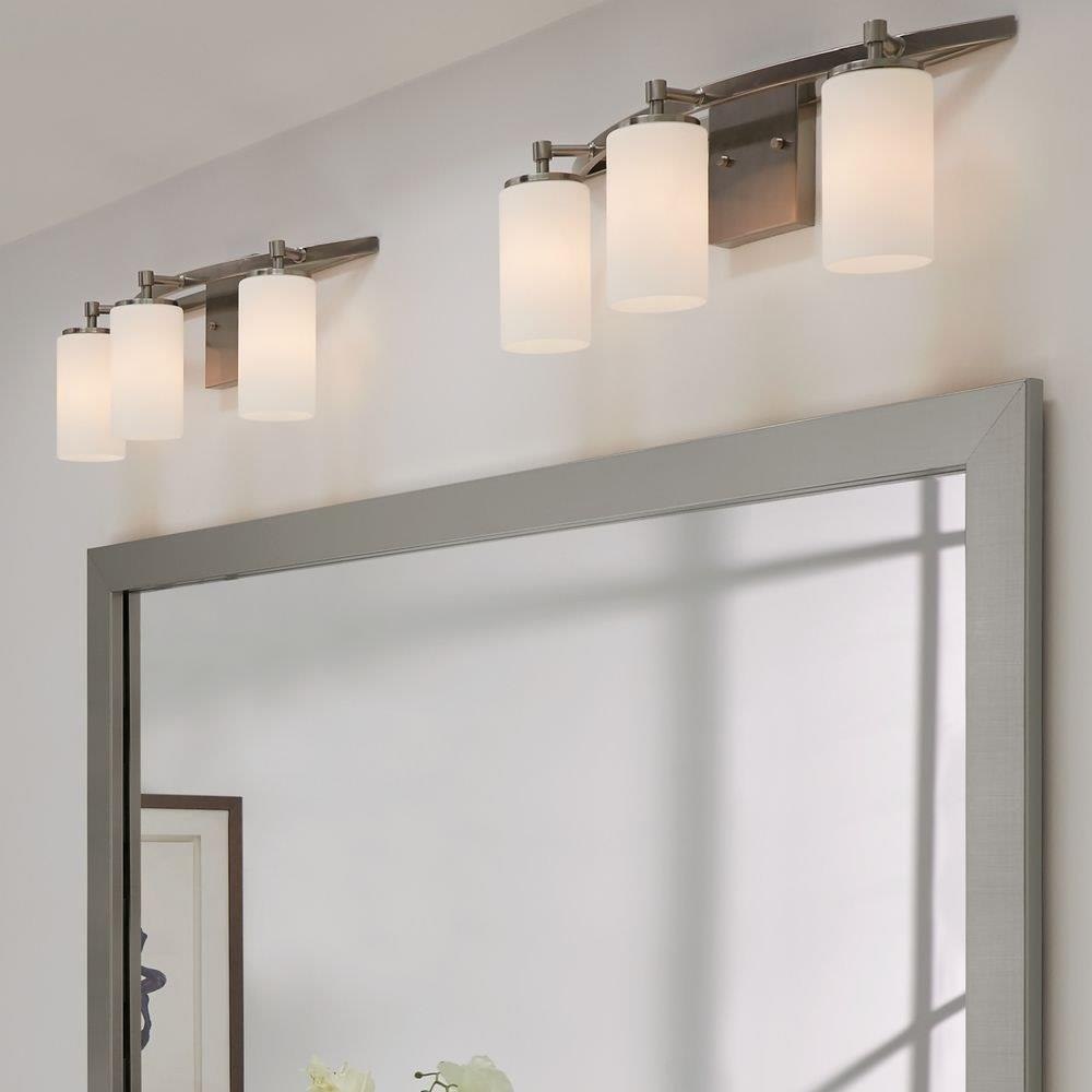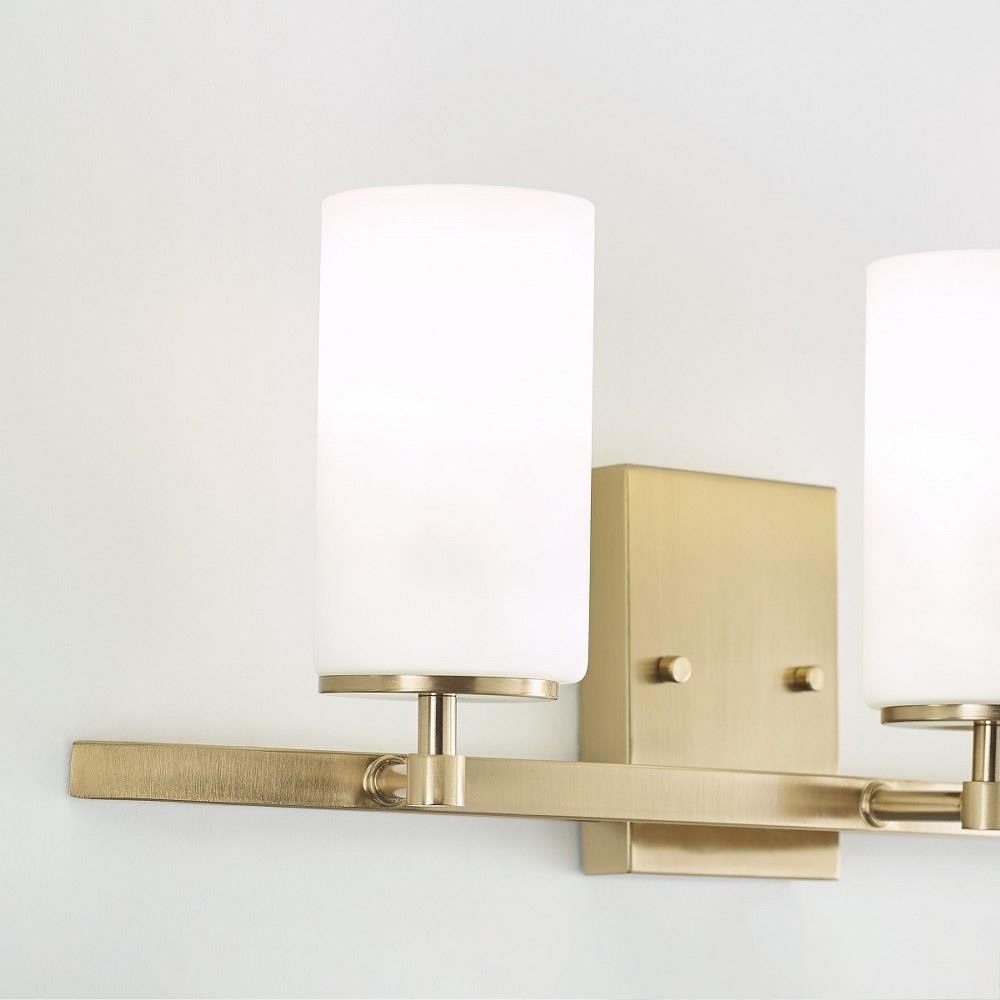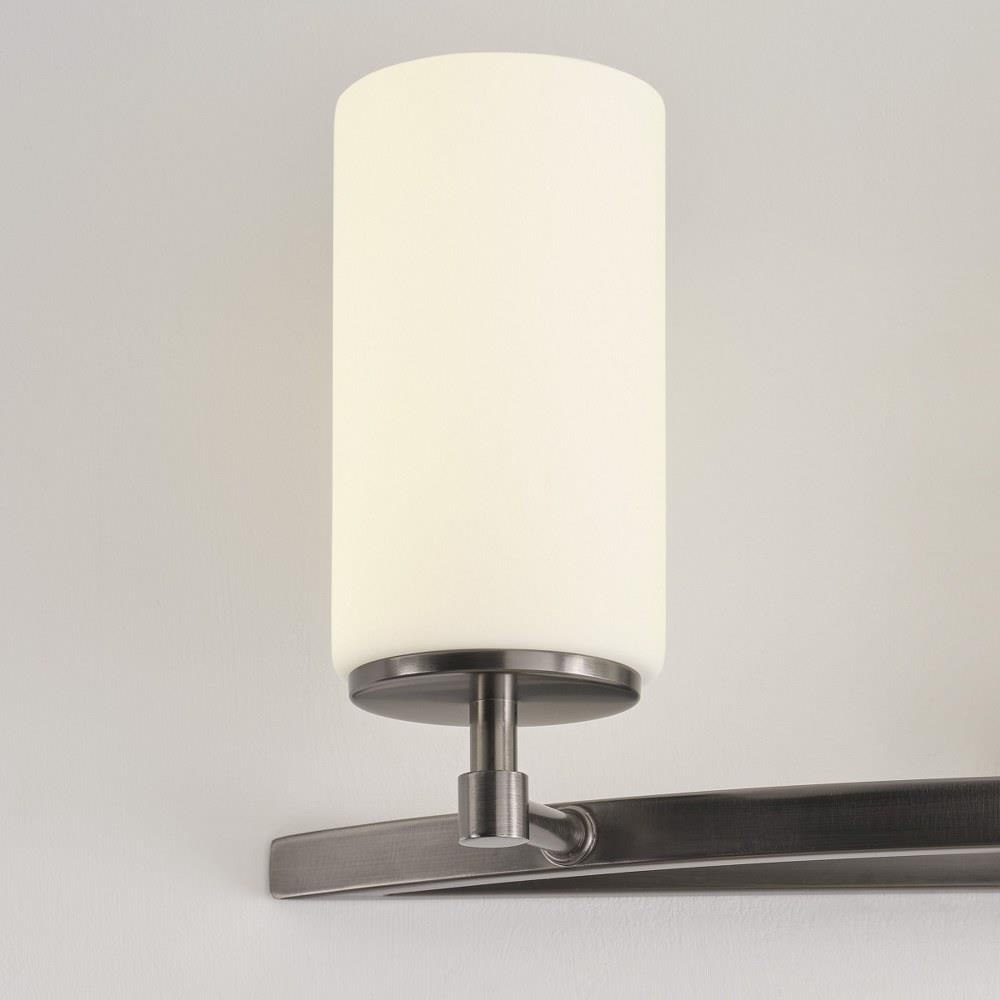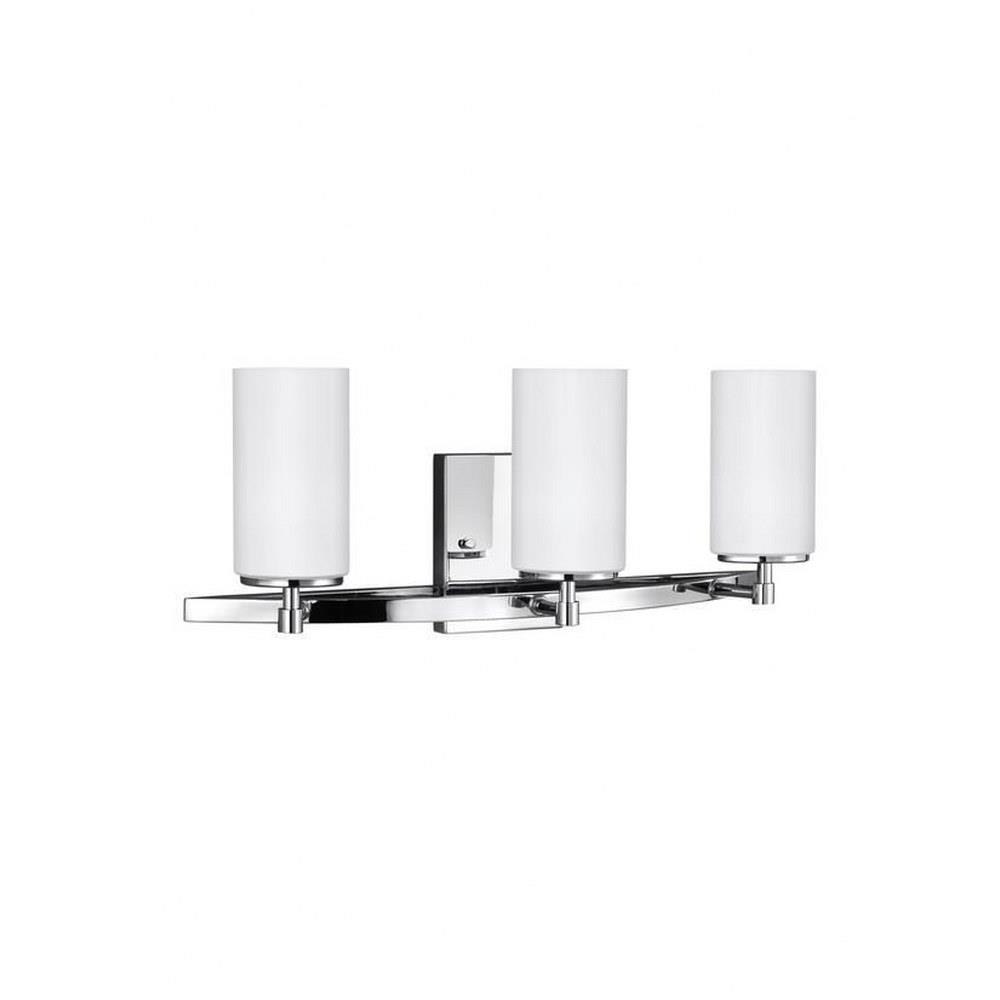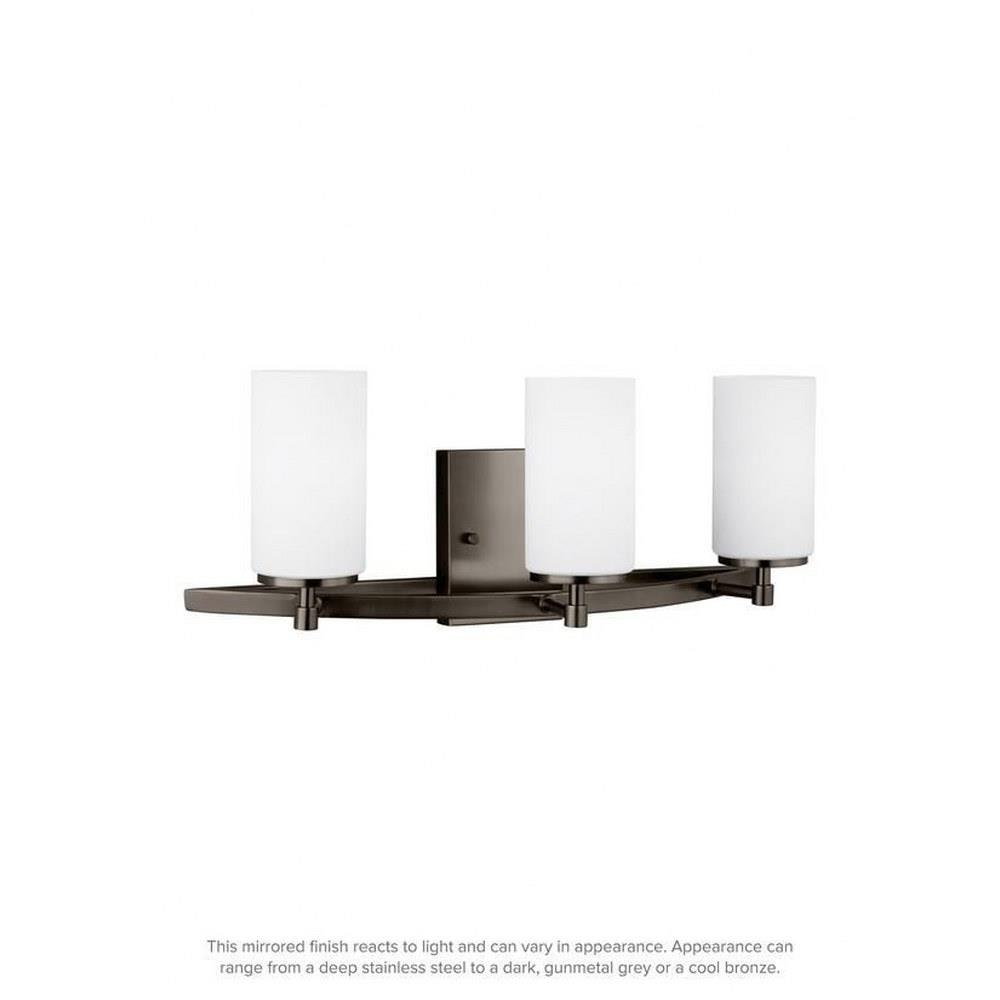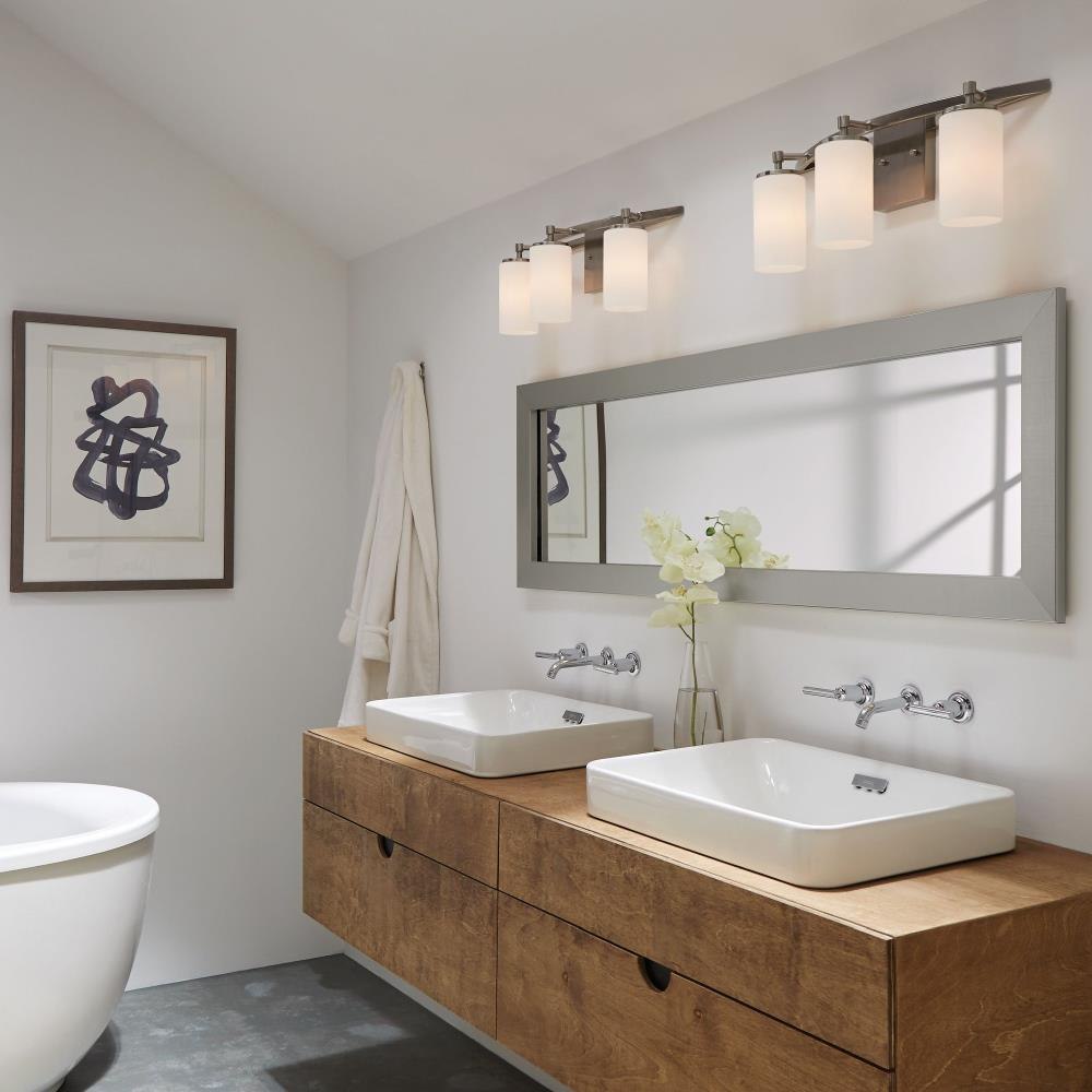 The Alturas three light vanity fixture in brushed nickel is an ENERGY STARĀ® qualified lighting fixture that uses LED bulbs to save you both time and money. The silhouette of the modern Alturas lighting collection by features an interlocking, spherical steel frame, which harkens back to the Unisphere constructed for the 1964 New York World's Fair. The minimalist Alturas Collection draws the eye to the soft, warm glow of the light emitted from the cylindrical Satin Etched glass shades. The full assortment includes three-, five- and nine-light chandeliers, a one-light mini pendant, a three-light pendant, a two-light semi flush which is convertible into a pendant, and one-, two-, three- and four-light bath fixtures. All fixtures are offered in Brushed Oil Rubbed Bronze, Brushed Nickel and Satin Bronze finishes, the bath fixtures are also offered in Chrome finish. Incandescent and ENERGY STAR-qualified LED lamping are available; all fixtures are California Title 24 compliant.Product Features and Benefits