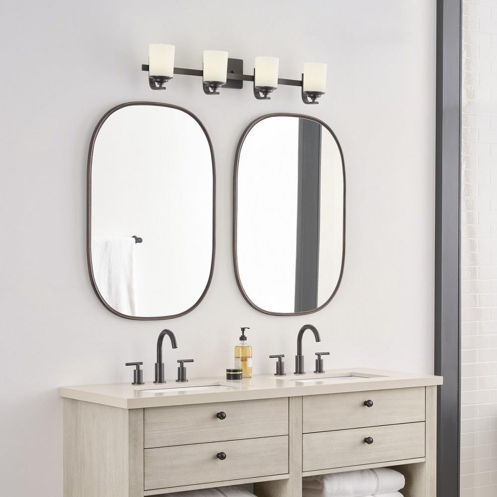 The Kemal four light vanity fixture in bronze is an ENERGY STARĀ® qualified lighting fixture that uses LED bulbs to save you both time and money.