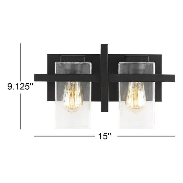 With its clean, contemporary lines and mix of materials, this 2-light vanity fixture instantly elevates your main or guest bathroom. The steel frame in a midnight black finish supports two clear drum-shaped shades, allowing for ample ambient lighting. This damp-rated light fixture is compatible with 75W bulbs (not included) and is dimmable, so you can set the mood just right. The hand blown glass shades and steel backplate add a touch of sophistication, while the versatile design complements a range of decor styles from farmhouse to coastal. Enhance your bathroom's ambiance with this striking vanity light.