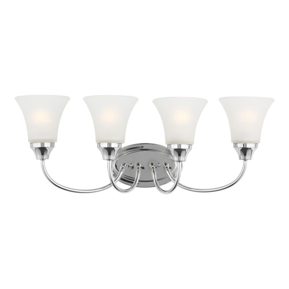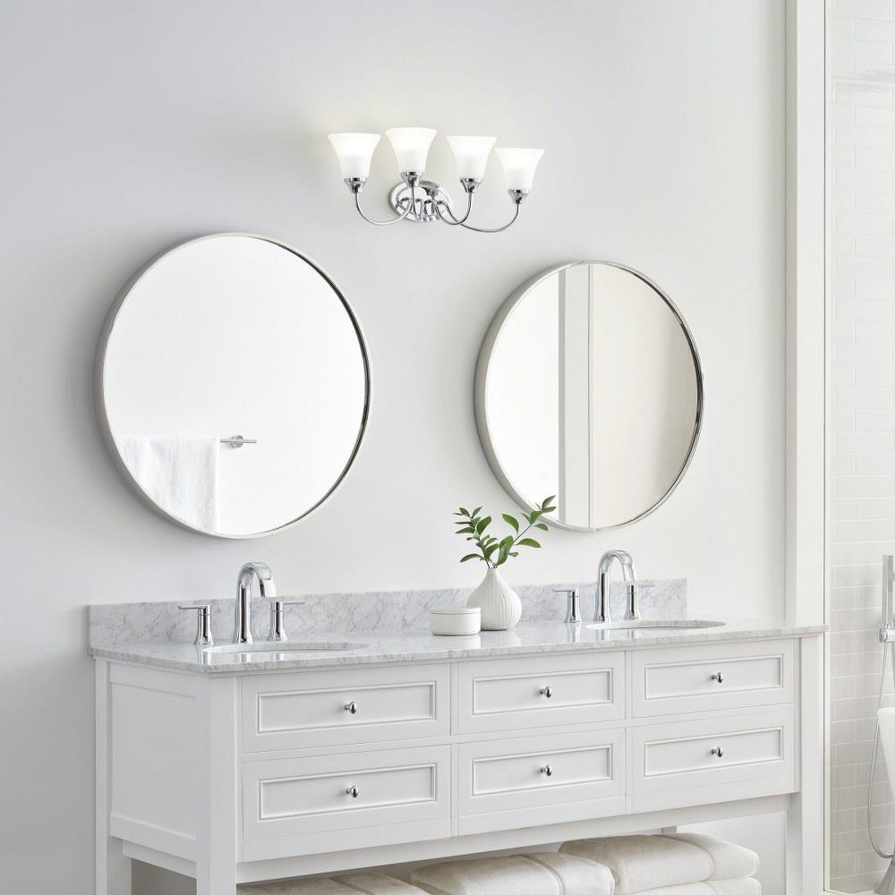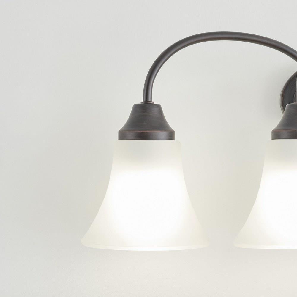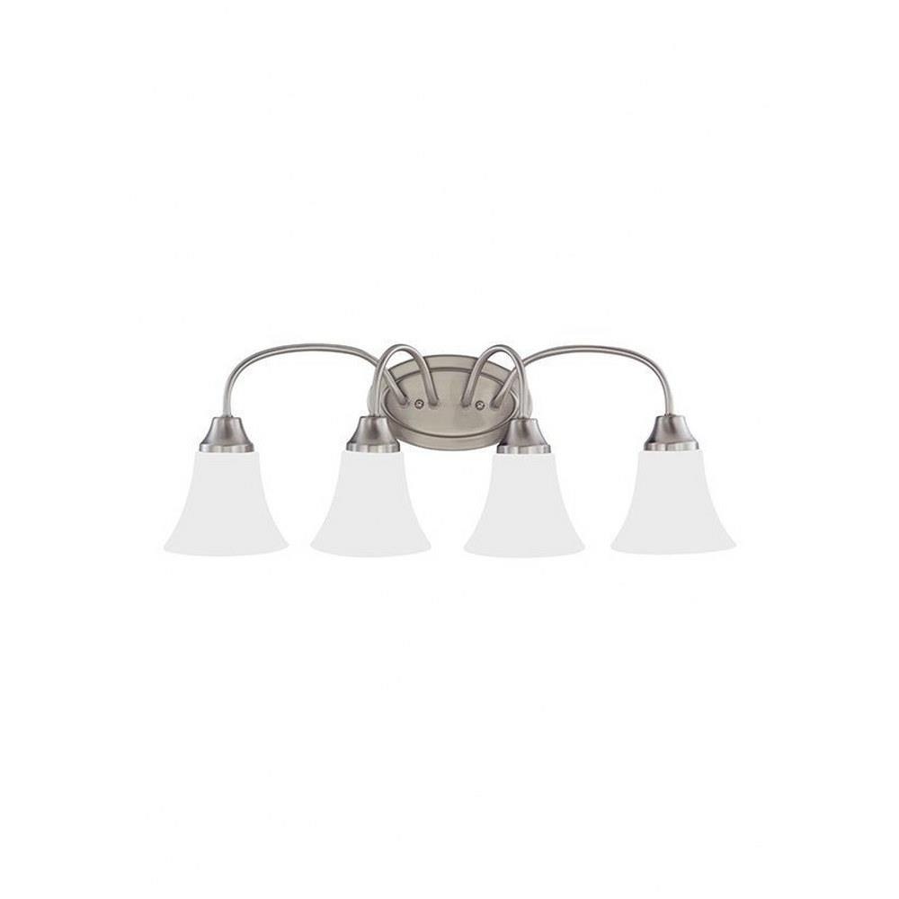 The Holman four light vanity fixture in bronze provides abundant light for your bath vanity, while adding a layer of today's style to your interior design. Holman features softly flared glass and curved arms, with just enough detail to give the overall look a lift while keeping it simple enough for those on a budgetProduct Features and Benefits