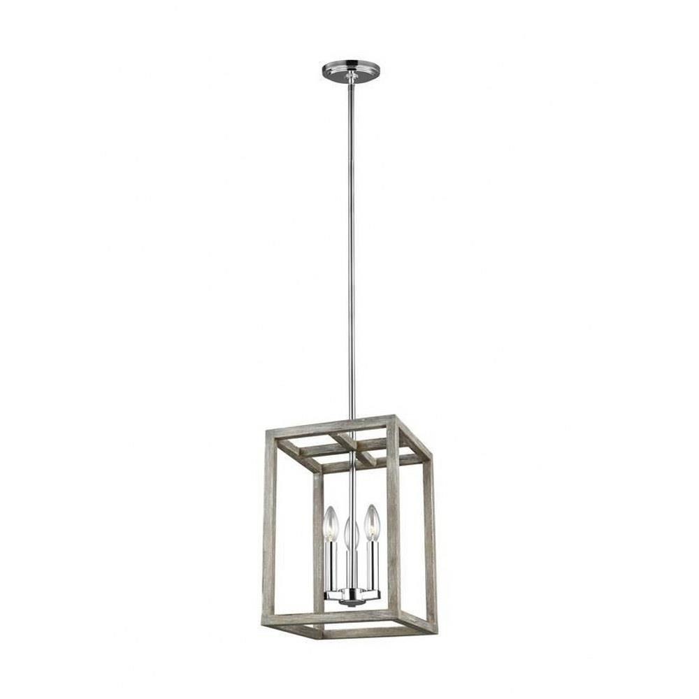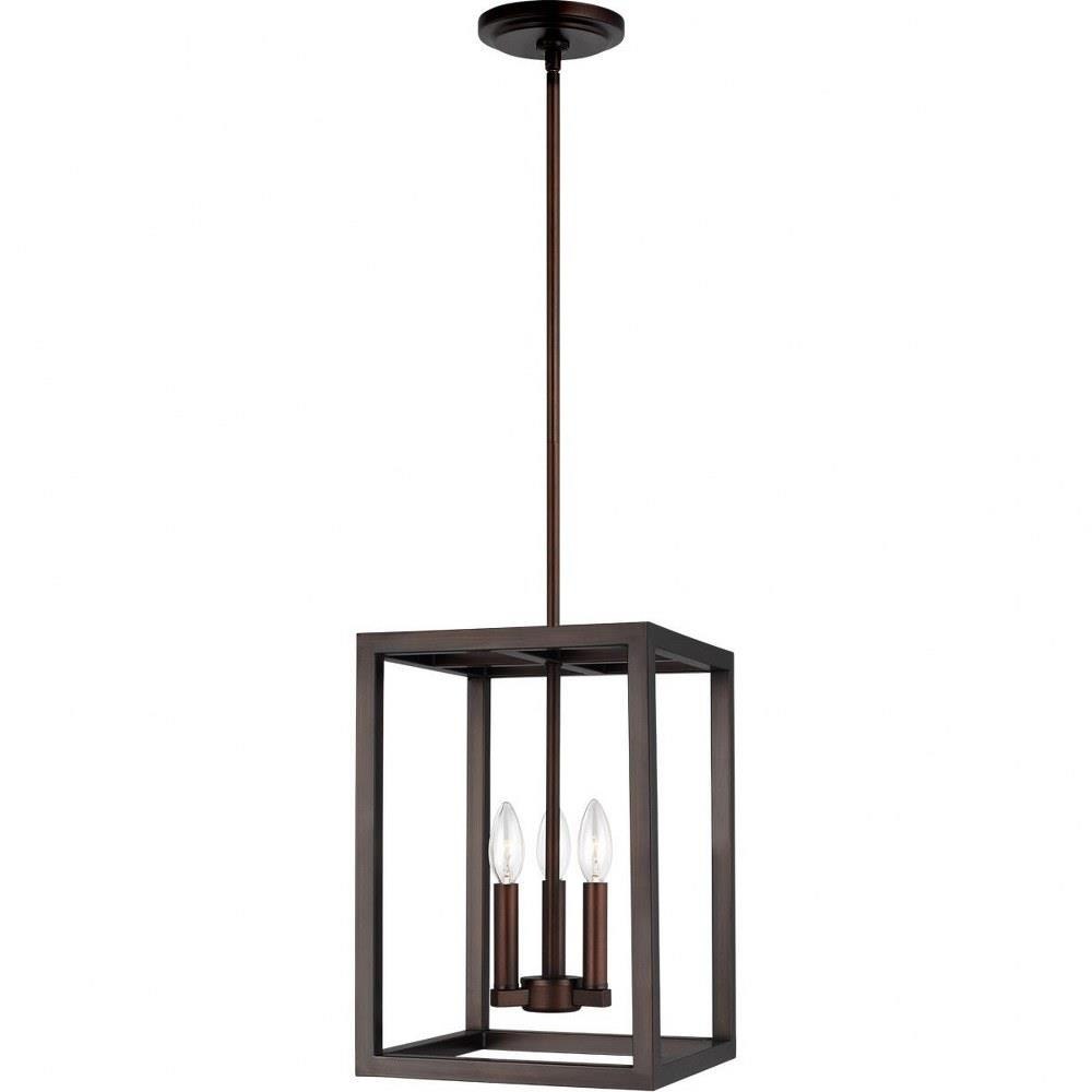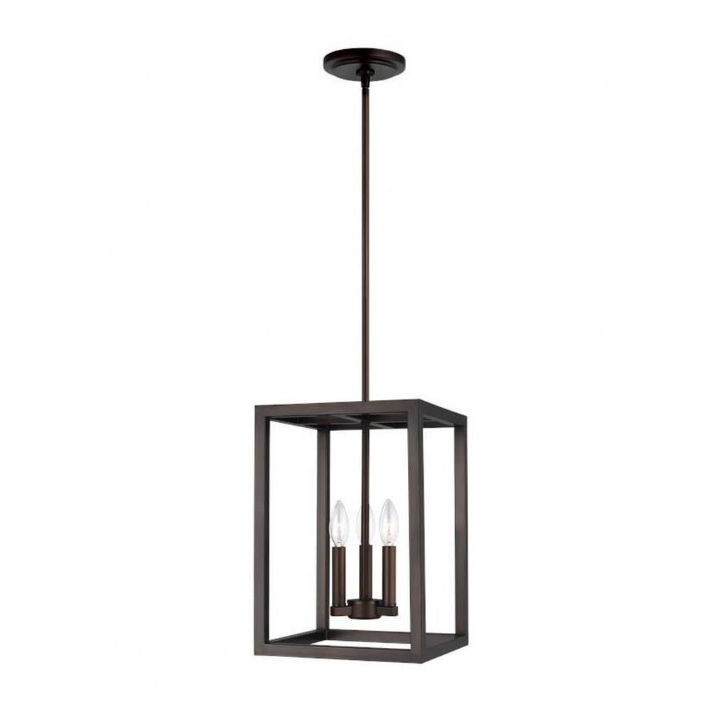 The Moffet Street three light indoor pendant in bronze is the perfect way to achieve your desired fashion or functional needs in your home. The Moffet Street series offers a distinctive take on a rustic theme. Built in broad steel frames with hand-applied finish that mimics natural wood. This combination of rustic and urban fits comfortably in a wide variety of environments. The sharp, squared lines of the frame complement a wide variety of settings. The collection includes eight-light foyer, four-light foyer, one- light wall sconce, and a six-light island fixture. The Moffet Street series is available in three beautiful finishes Washed Pine, Brushed Nickel and Satin Bronze All fixtures are California Title 24 compliant and damp rated for use in sheltered, damp environments.