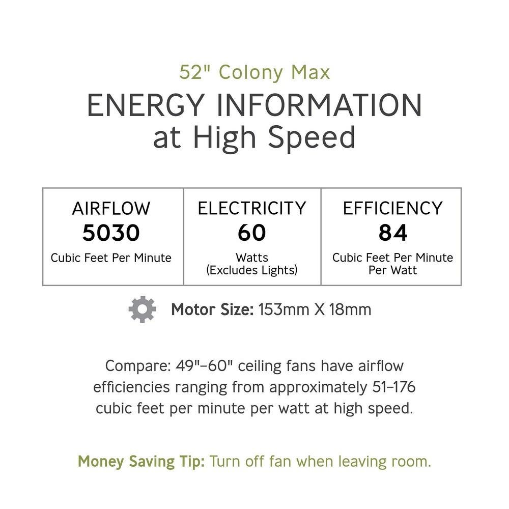 The Colony 52 in Roman Bronze features a 153.0 X 18.0 3 speed motor with a Twelve-degree blade pitch. The tailored silhouette and multiple finishes and mounting options. Colony 52 ceiling fan makes it a Universal choice for any decor and room size. The Colony 52 is rated for damp locations and has an optional remote control. Product Features and Benefits