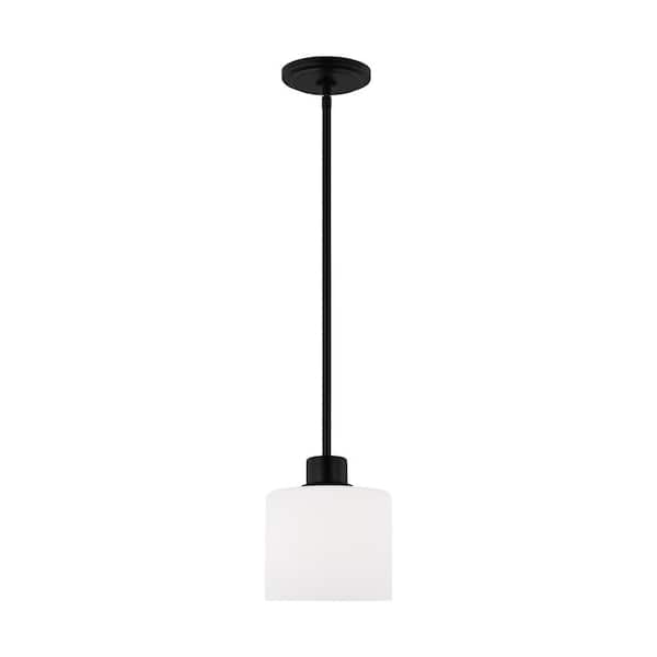 Canfield 1-Light Midnight Black Shaded Mini Pendant With Etched White Glass Shade
