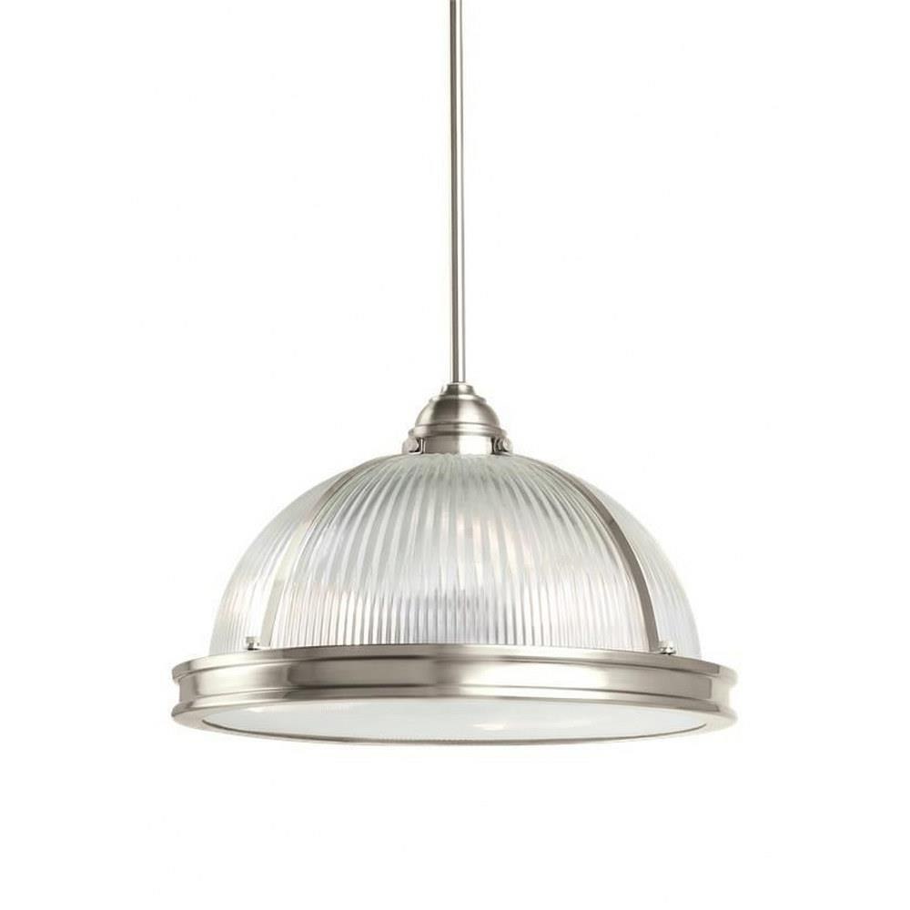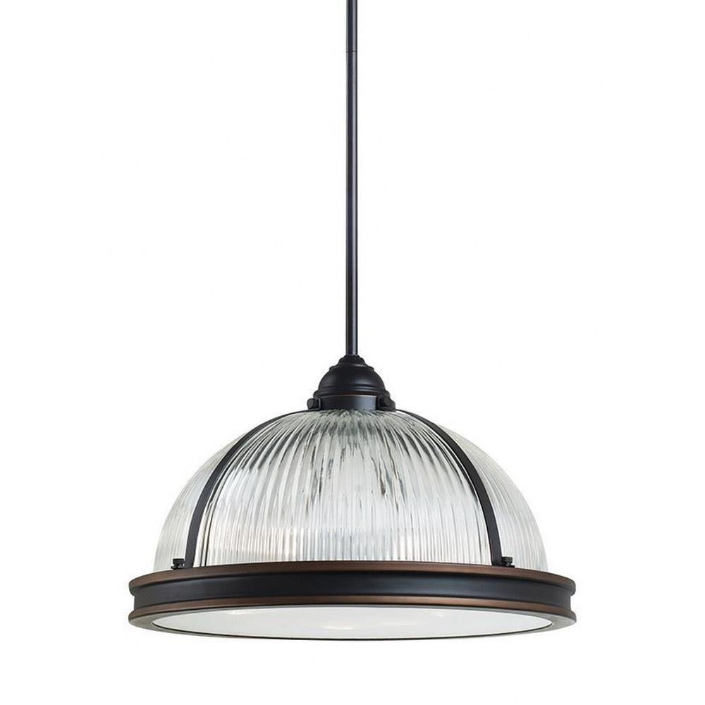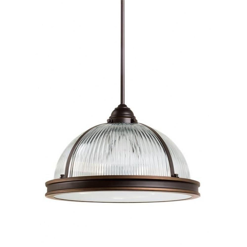 The Pratt Street Prismatic three light indoor pendant in autumn bronze is an ENERGY STARĀ® qualified lighting fixture that uses LED bulbs to save you both time and money. Inspired by industrial lighting, the hard-working, large-scale Pratt Street prismatic pendants by put light where you need it, while making a significant design statement. Offered in a choice of Brushed Nickel or Autumn Bronze finishes, the one-light, two-light and three-light prismatic glass pendants are all fully enclosed with a prismatic diffusor at the bottom to spread light output evenly and alleviate glare. The pendants are available in incandescent and ENERGY STAR-qualified LED versions, and all can easily convert to LED by purchasing LED replacement lamps sold separately.Product Features and Benefits