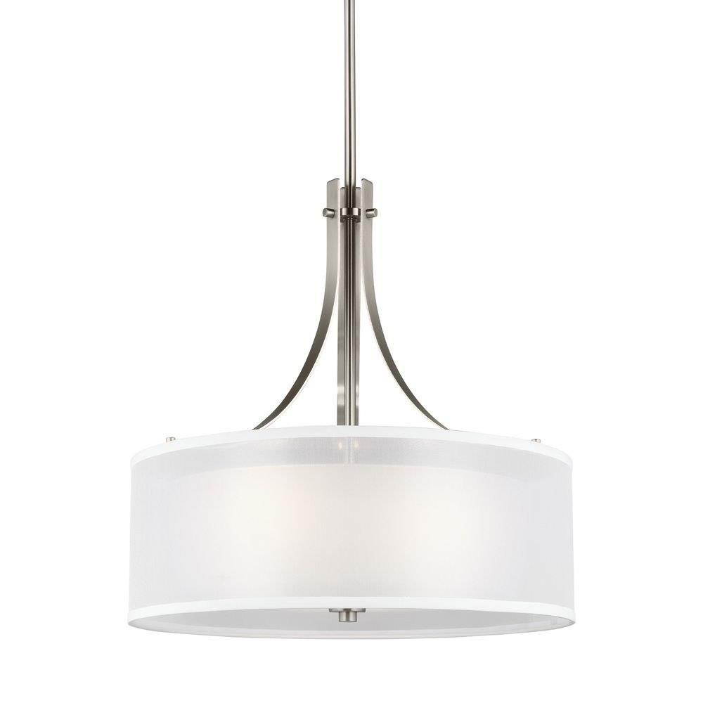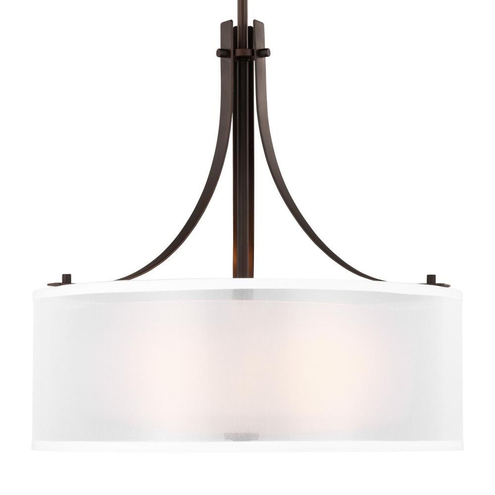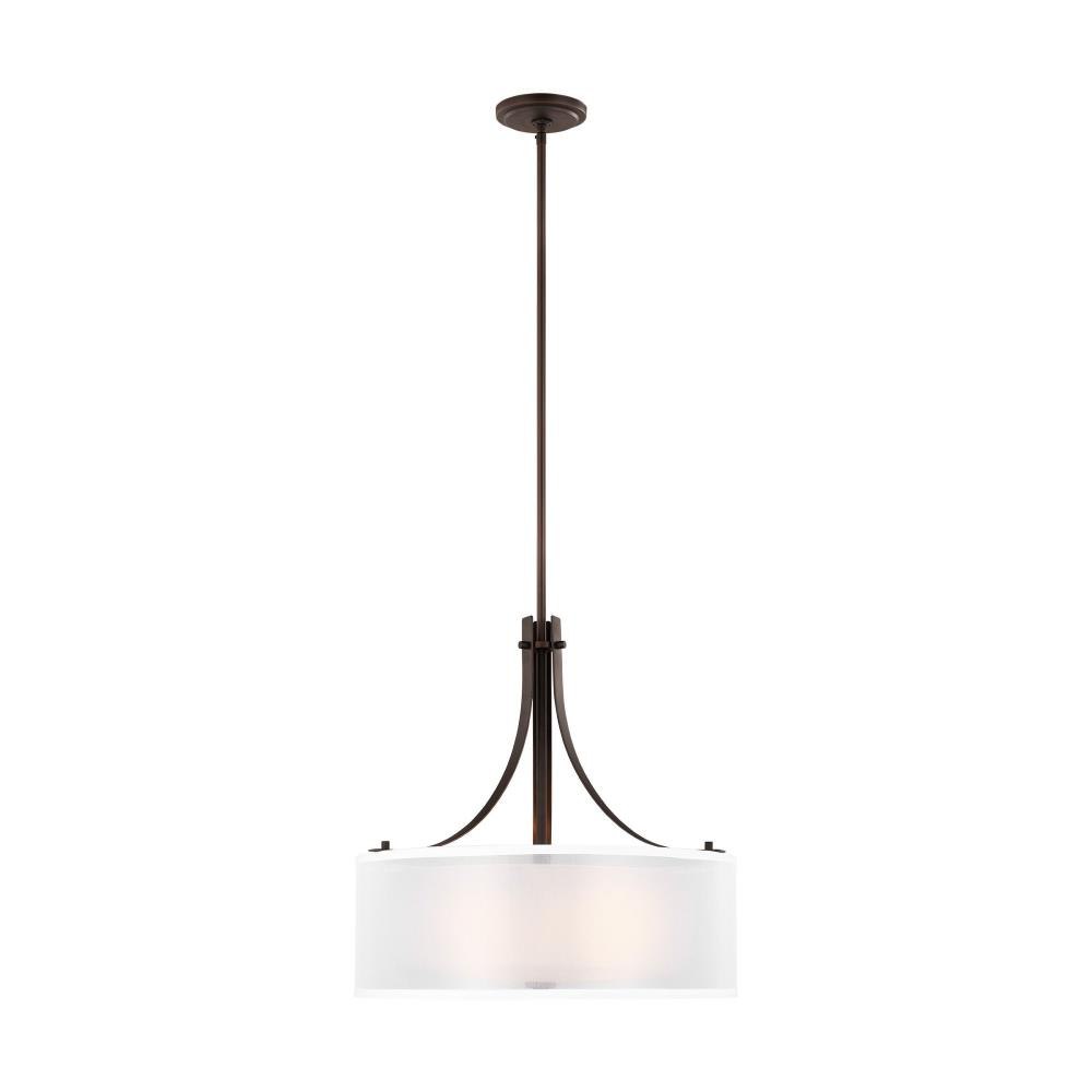 The Elmwood Park three light indoor pendant in bronze is the perfect way to achieve your desired fashion or functional needs in your home. Elmwood Park by has clear glass tube shades with an inner white glass element that softens the light and helps cast an even glow. A cylinder of etched glass is centered within a larger cylinder of clear glass which encircles each light bulb to create this stunning visual effect. The full assortment includes three-, five-and nine-light chandeliers, a four-light linear, one-light mini pendant, a three-light pendant, a two-light semi flush which is convertible into a pendant, and one-, two-, three- and four-light bath fixtures. All fixtures offered in either a Brushed Nickel or Brushed Oil Rubbed Bronze. Incandescent and ENERGY STAR-qualified LED lamping are available; all fixtures are California Title 24 compliant.Product Features and Benefits