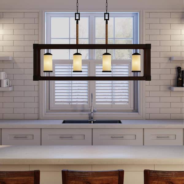 Dunning 36 in. W. 4-Light Weathered Gray and Distressed Oak Kitchen Island Light with LED Bulbs