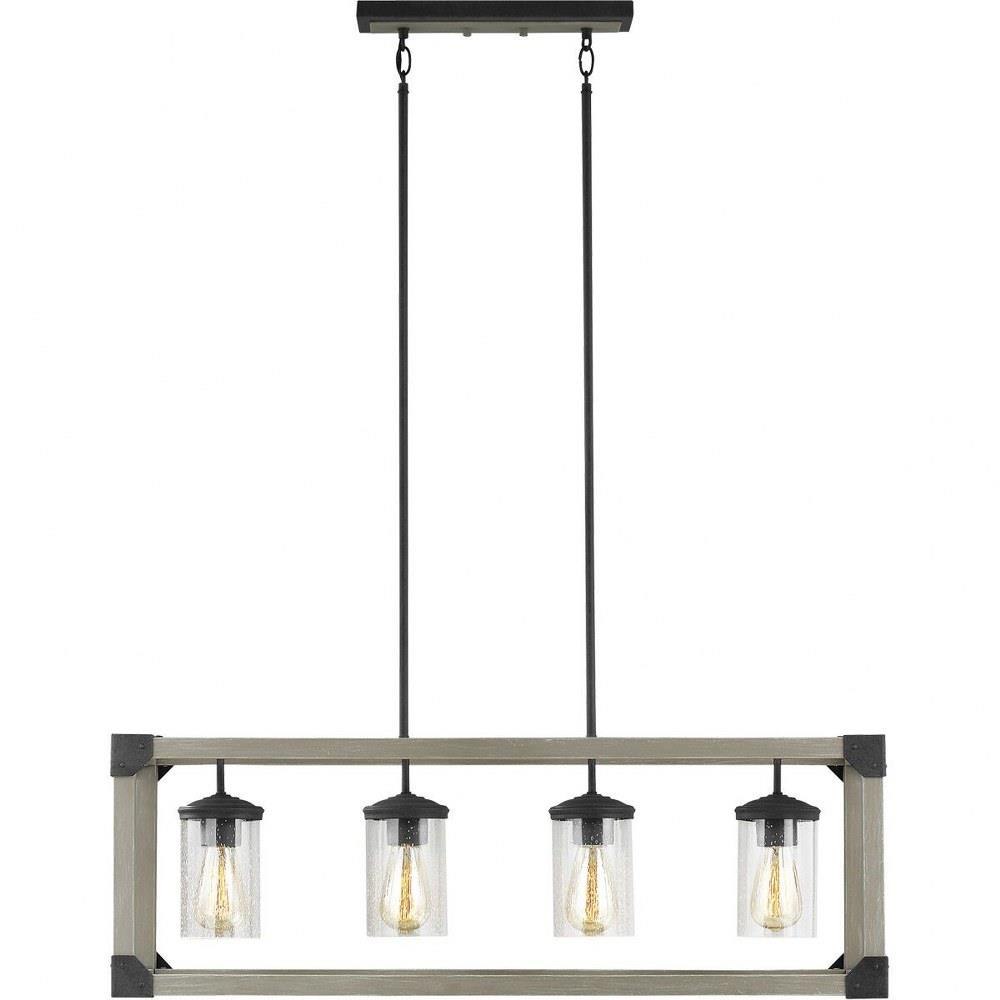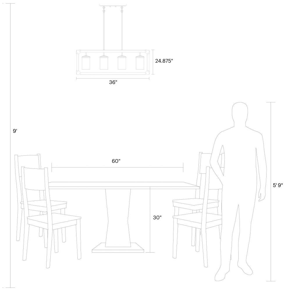 The Dunning four light linear chandelier in driftwood gray is the perfect way to achieve your desired fashion or functional needs in your home. Making a statement without overpowering the surrounding decor, the Dunning lighting collection by is a chic addition to a wide range of interiors. The bold design is inspired by farmhouse influences seen in the rustic rope detail highlighting the open, square frame which surrounds medium based lamps covered in Creme Parchment glass shades. The Dunning collection features a unique two-tone finish of Stardust on the overall metal structure, with the open frame in Cerused Oak finish. The full lighting collection features a three-light and five-light chandeliers; a one-light mini-pendant, a four-light island chandelier; a two-light flush mount; and one-light, two-light, three-light and four-light bath fixtures (all of which can mount up or down). Both incandescent lamping and ENERGY STAR-qualified LED lamping are available.Product Features and Benefits