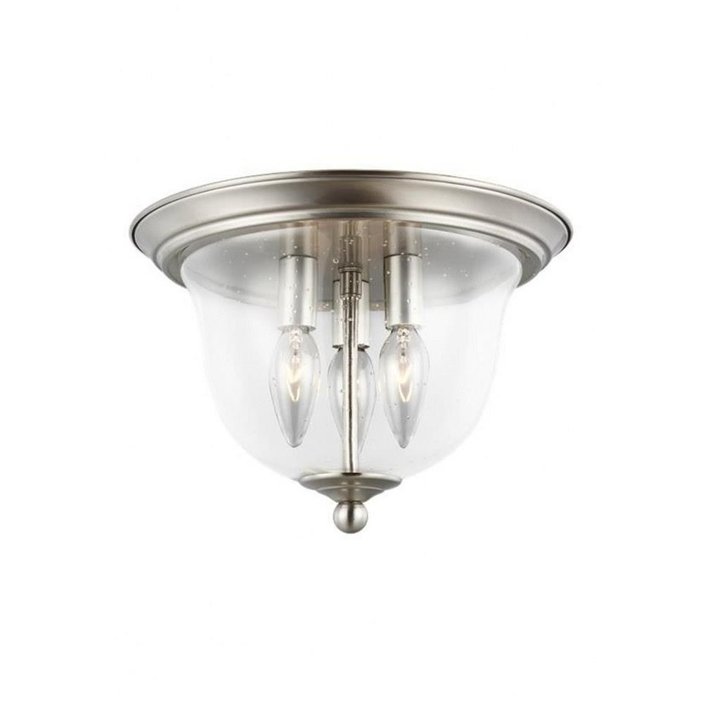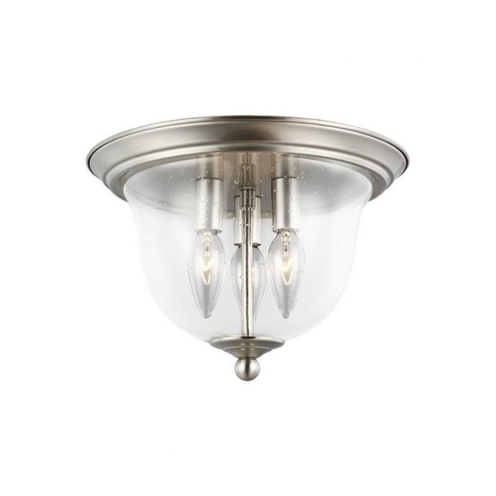 The Belton three light flush mount fixture in bronze provides abundant light to your home, while adding style and interest. Influenced by the vintage industrial designs of early 20th Century America, the transitional Belton lighting collection has seeded glass shades and Midnight Black finish, adding a layer of retro design to the warm look.Product Features and Benefits