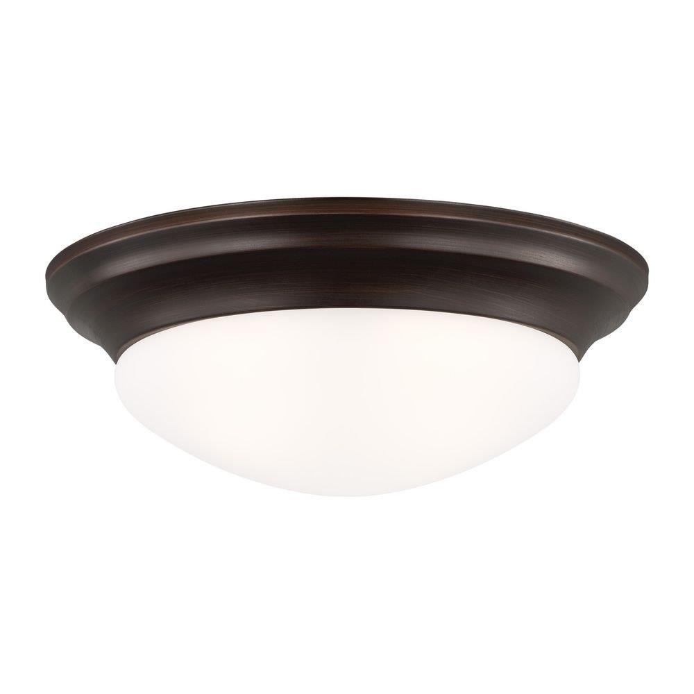 The Nash two light flush mount fixture in bronze is the perfect way to achieve your desired fashion or functional needs in your home. The Nash flush mount ceiling fixtures by provide a clean, subtle look with a designer finish. Offered in Chrome, Brushed Nickel, Satin Bronze, White and Heirloom Bronze finishes, the assortment includes one-light, two-light and three-light flush mounts. Installation and bulb changing is easy with a twist and lock glass shade - no screws or glass holders to lose. Incandescent, Integrated LED, and ENERGY STAR-qualified LED lamping are available. All fixtures are Damp Rated and California Title 24 compliant.Product Features and Benefits