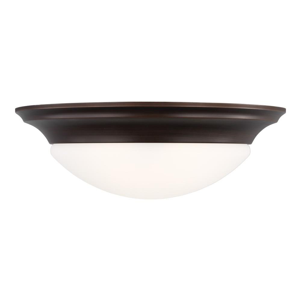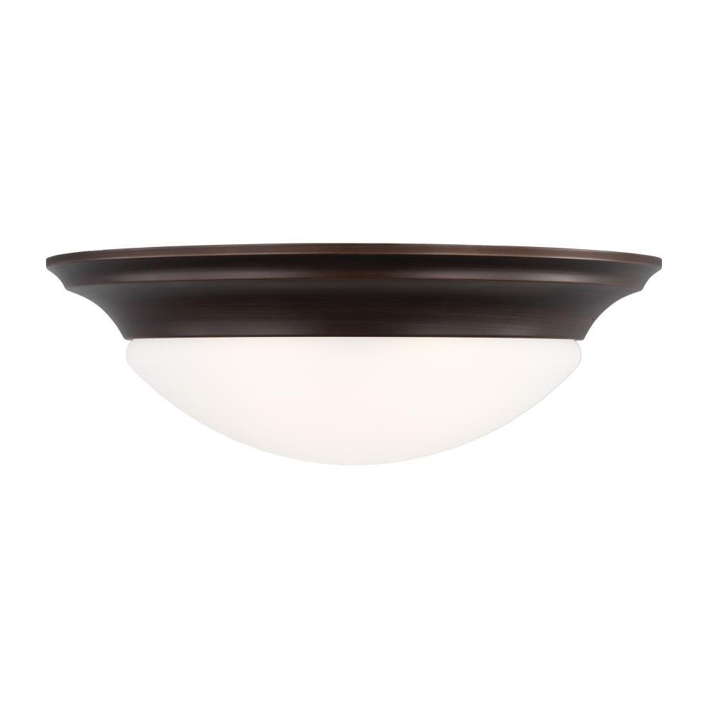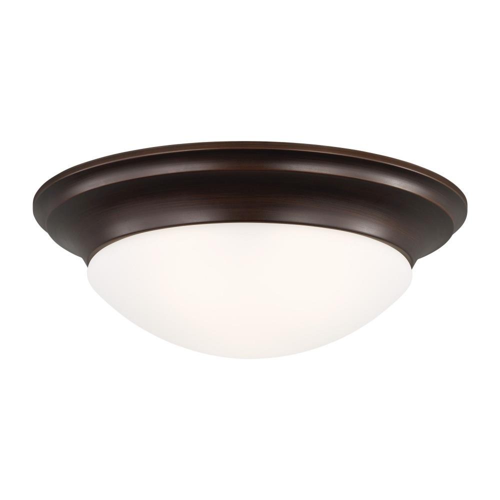 The Nash three light flush mount fixture in bronze enhances the beauty of your home with ample light and style to match today's trends. The Nash flush mount ceiling fixtures by provide a clean, subtle look with a designer finish. Offered in Chrome, Brushed Nickel, Satin Bronze, White and Heirloom Bronze finishes, the assortment includes one-light, two-light and three-light flush mounts. Installation and bulb changing is easy with a twist and lock glass shade - no screws or glass holders to lose. Incandescent, Integrated LED, and ENERGY STAR-qualified LED lamping are available. All fixtures are Damp Rated and California Title 24 compliant.