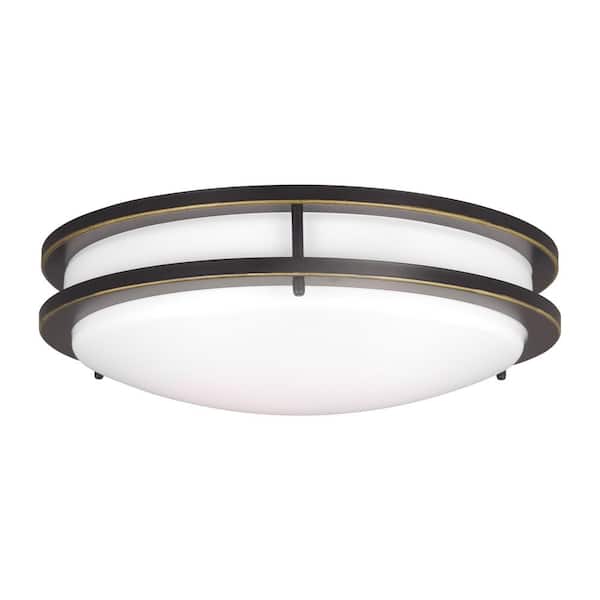 Mahone 14.5 in. 1-Light Antique Bronze Integrated LED Flush Mount