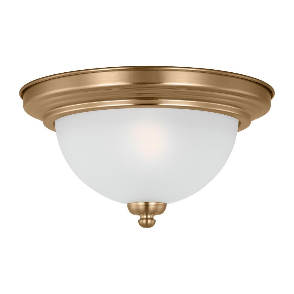 The Geary one light flush mount fixture in Satin Brass supplies ample lighting for your daily needs, while adding a layer of today's style to your home's décor. Adaptability takes center stage with the Geary Collection. This series of traditional up-light pendants, semi-flush and flush-mount fixtures feature decoratively bowed arms and constructed of rectangular steel tubing. Geary flush mount is a true cross-collection piece, offered in six beautiful finishes Chrome, Midnight Black, Brushed Nickel, Bronze, White and Satin Brass. The Geary has a universal appeal matching 24 different interior collections. Offering subtle style with practical design, Geary is at home in almost any room. The fixtures have a fluid movement with a traditional look to complement a wide range of decor.Product Features and Benefits