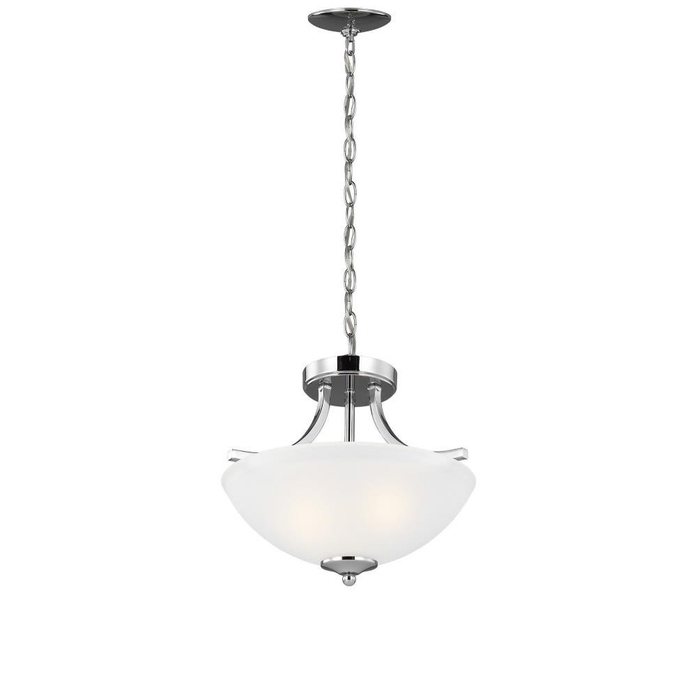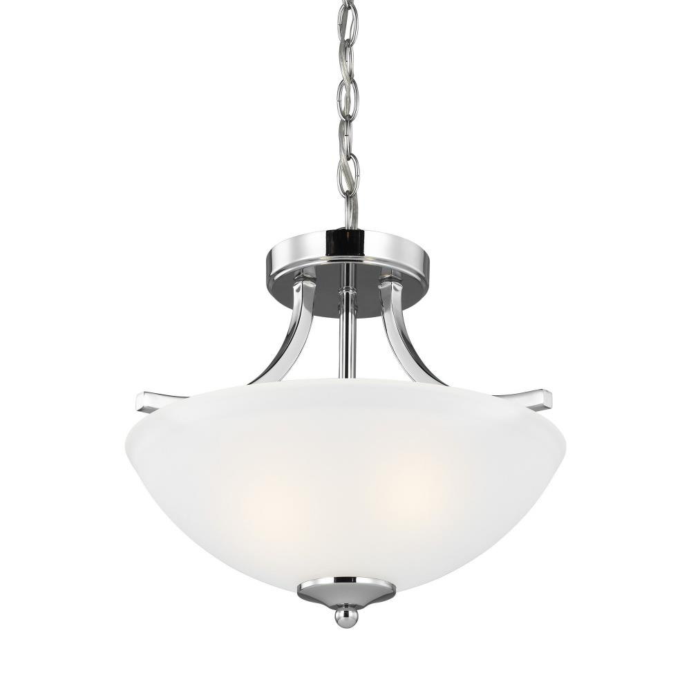 The Geary two light indoor semi-flush convertible in Chrome enhances the beauty of your home with ample light and style to match today's trends. Adaptability takes center stage with the Geary Collection. This series of traditional up-light pendants, semi-flush and flush-mount fixtures feature decoratively bowed arms and constructed of rectangular steel tubing. Geary is a true cross-collection piece, offered in four beautiful finishes Midnight Black, Brushed Nickel, Bronze and Satin Brass. The Geary has a universal appeal matching 24 different interior collections. Offering subtle style with practical design, Geary is at home in almost any room. The fixtures have a fluid movement with a traditional look to complement a wide range of decor.Product Features and Benefits