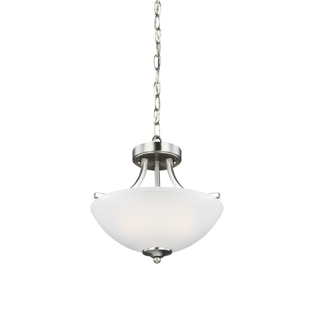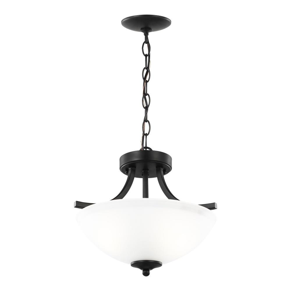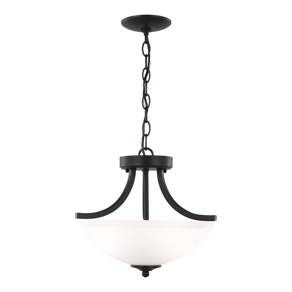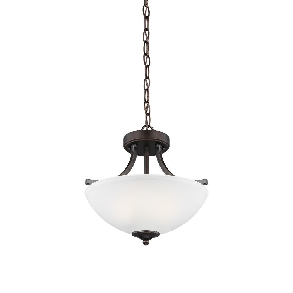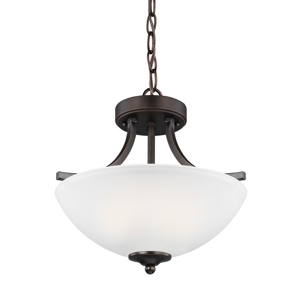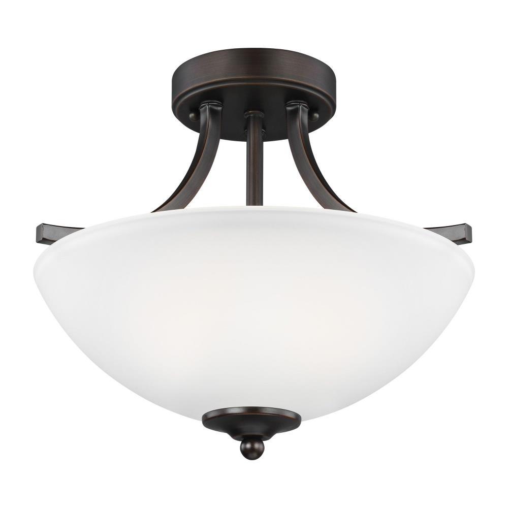 The Geary two light indoor semi-flush convertible in bronze is an ENERGY STARĀ® qualified lighting fixture that uses LED bulbs to save you both time and money. Adaptability takes center stage with the Geary Collection. This series of traditional up-light pendants, semi-flush and flush-mount fixtures feature decoratively bowed arms and constructed of rectangular steel tubing. Geary is a true cross-collection piece, offered in four beautiful finishes Blacksmith, Brushed Nickel, Burnt Sienna and Heirloom Bronze. The Geary has a universal appeal matching 24 different interior collections. Offering subtle style with practical design, Geary is at home in almost any room. The fixtures have a fluid movement with a traditional look to complement a wide range of decor.Product Features and Benefits