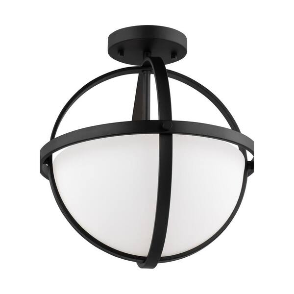 Alturas 14 in. 2-Light Modern Midnight Black Semi-Flush Mount Convertible Pendant