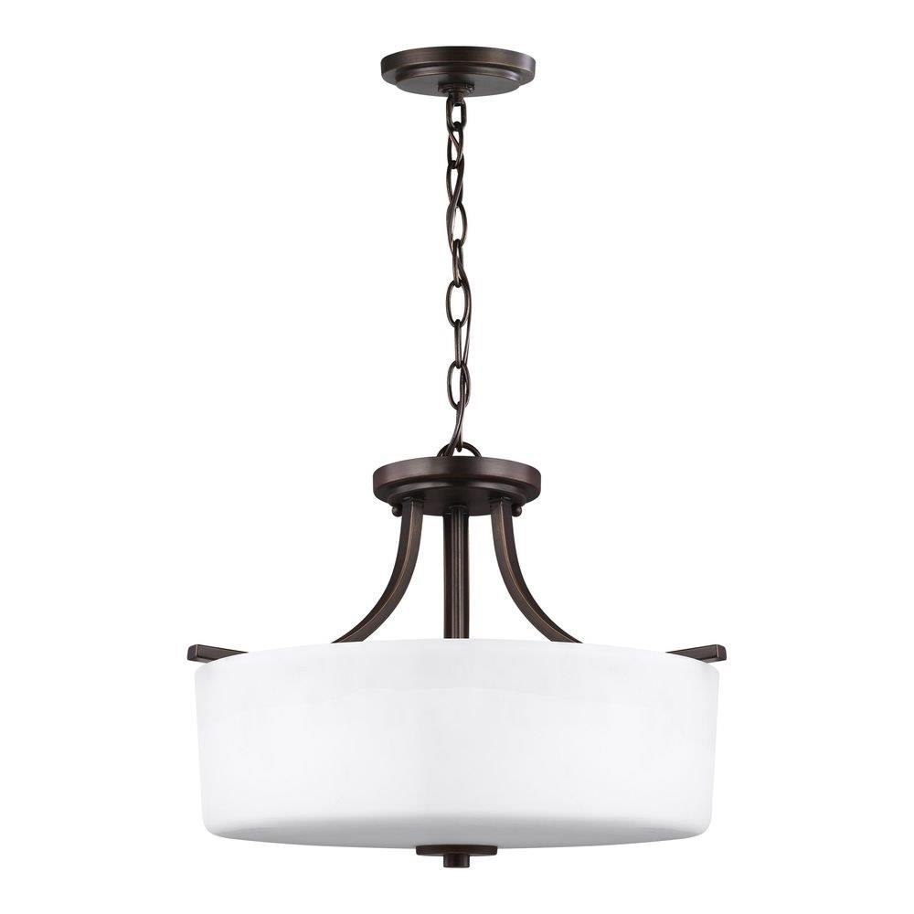 The Canfield three light semi flush fixture in bronze is an ENERGY STARĀ® qualified lighting fixture that uses LED bulbs to save you both time and money. Behind every seemingly simple design lies unerring attention to restraint and obsessive attention to the tiniest details. The Canfield collection by draws on the modernist traditions of "less is more". Essential functional elements dictate the aesthetics, and clean lines prevail. Layers of intricately finished hand-brushed steel progress vertically to the soft glow of light diffused through finely etched glass diffusors. Canfield offers a "whole home" lighting solution; offering lighting in every imaginable category from the auspicious 15 light 3-tier chandelier, to the concise mini-pendant and one-light sconces. The collection is available in hand brushed Burnt Sienna for a warm, tactile, almost Craftsman design style, or a brushed nickel to emphasize the more architectural elements of your interior.Product Features and Benefits