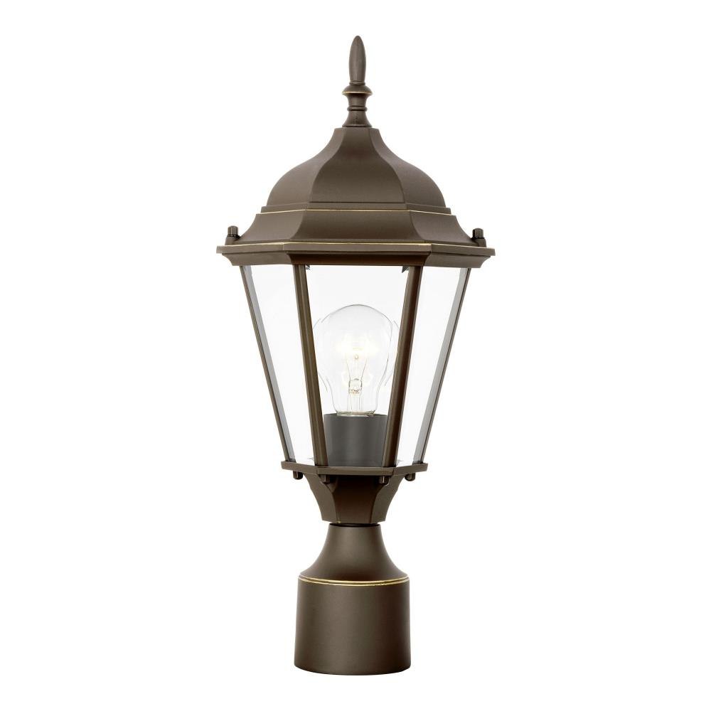 The Bakersville one light outdoor post top in antique bronze creates a warm and inviting welcome presentation for your home's exterior. Bakersville outdoor lighting fixtures from are made to complement a wide range of architectural styles. Each light is crafted from high quality, durable steel and aluminum to provide you sensible style that lasts. The large, 1-light outdoor wall lantern is offered in Heirloom Bronze with Satin Etched glass or Clear Beveled glass. The remaining assortment of wall lanterns in three sizes and a Flush mount ceiling fixture are offered in a Black Powder coat finish with Satin Etched glass (with ENERGY-STAR-qualified LED lamping options) or Clear Beveled glass (which can easily convert to LED by purchasing LED replacement lamps sold separately).