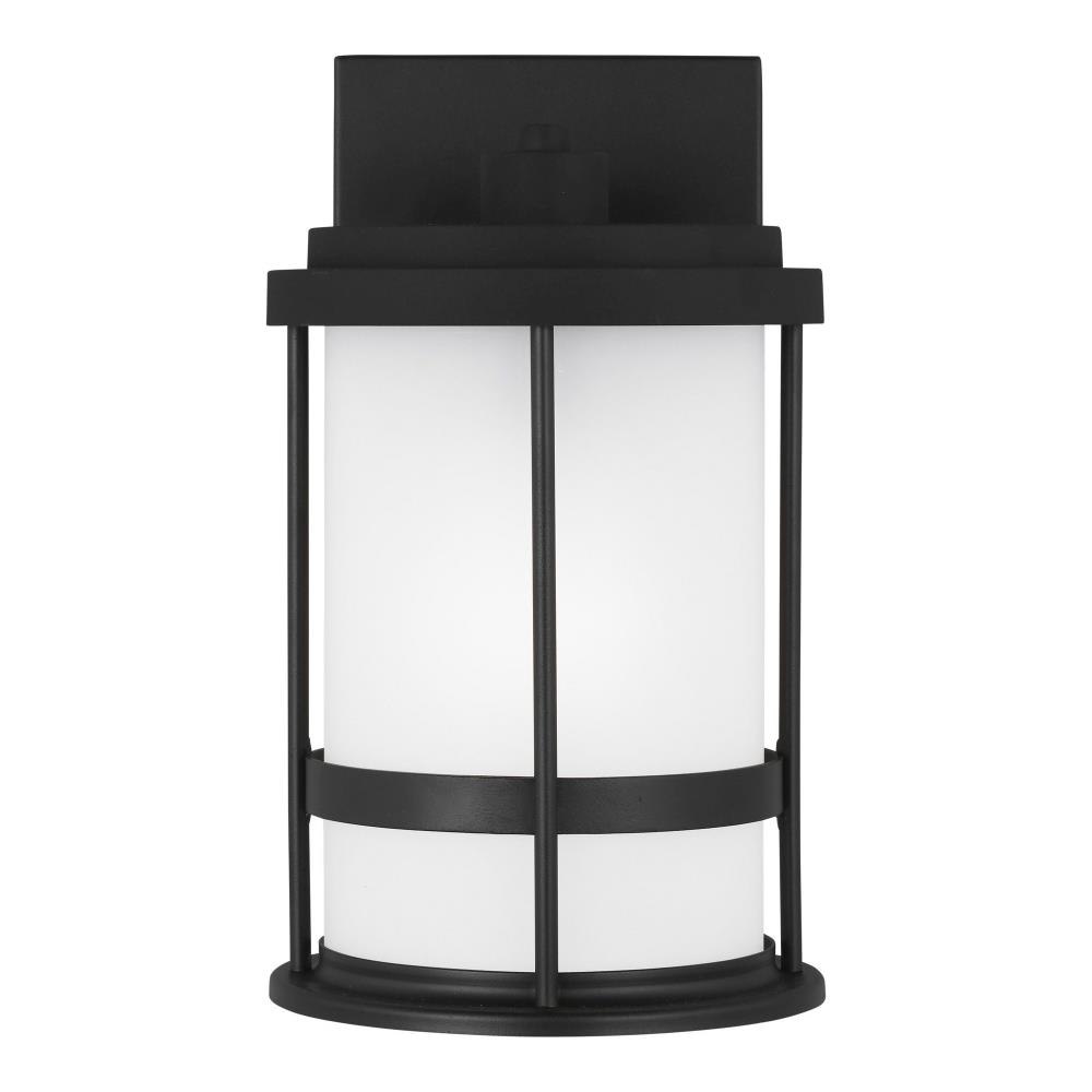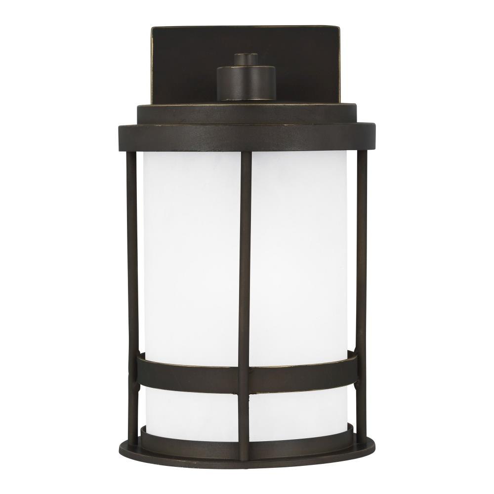 With a nod to retro-industrial chic, the Wilburn outdoor fixtures wraps a white frosted glass shade in a fun metal cage to create a casual and easygoing look. Offered in Antique Bronze and Black finishes with Etched White glass, the assortment includes a one-light outdoor pendant, small medium, large, and extra-large one-light outdoor wall lanterns, a one-light out door post lantern and a one-light outdoor ceiling flush mount. Both incandescent lamping and ENERGY STAR-qualified LED lamping are available for most of the fixtures, and some can easily convert to LED by purchasing LED replacement lamps sold separately.Product Features and Benefits