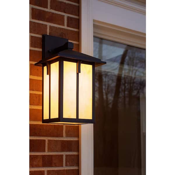 Tomek Medium 14 in. Black Outdoor Hardwired Wall Lantern Sconce with No Bulb Included