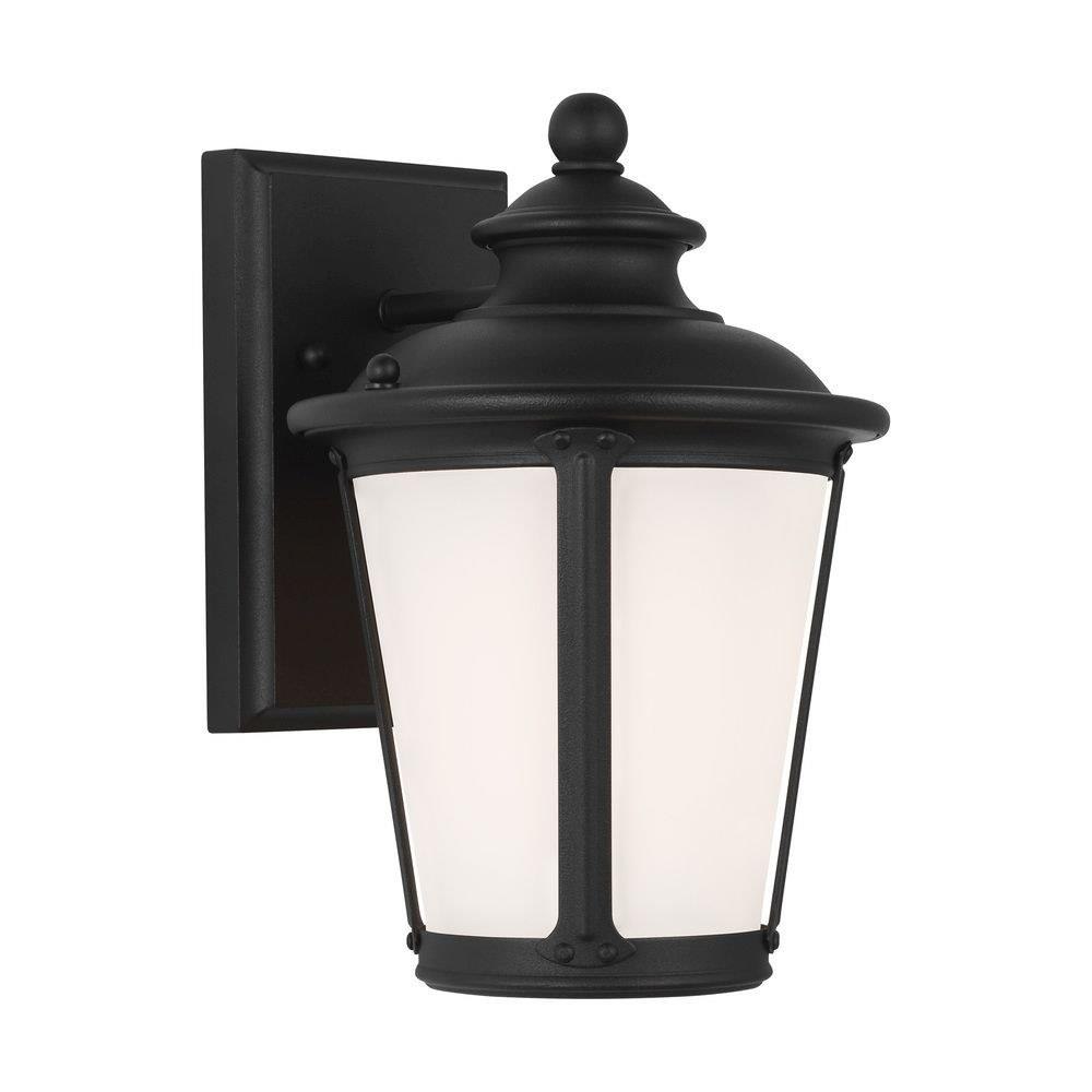 The Cape May one light outdoor wall fixture in black creates a warm and inviting welcome presentation for your home's exterior. The Cape May outdoor lighting collection by is a regal, traditionally styled lantern collection. Design elements include leaf ornamentation on the back plate and finial arms as well as the beautiful combination of the Burled Iron finish and Etched Hammered glass with Light Amber Tint to offer a warm glow. The assortment includes a small one-light outdoor wall lantern (available in a Dark Sky version too), a medium one-light outdoor wall lantern, a large one-light outdoor wall lantern, an extra-large one-light outdoor wall lantern, a one-light outdoor post lantern, a one-light outdoor pendant and a one-light ceiling flush mount. Both incandescent and LED ENERGY STAR-qualified lamping available, and most of these fixtures easily convert to LED.Product Features and Benefits