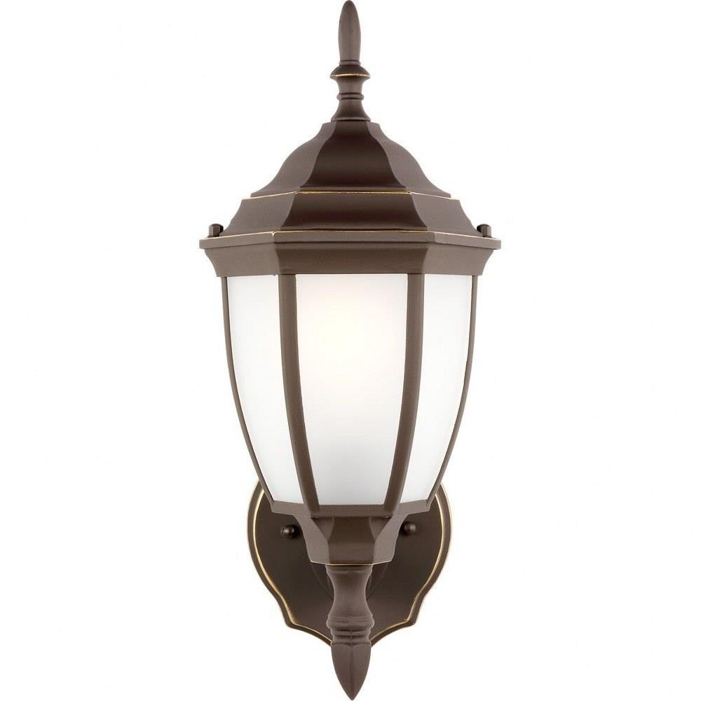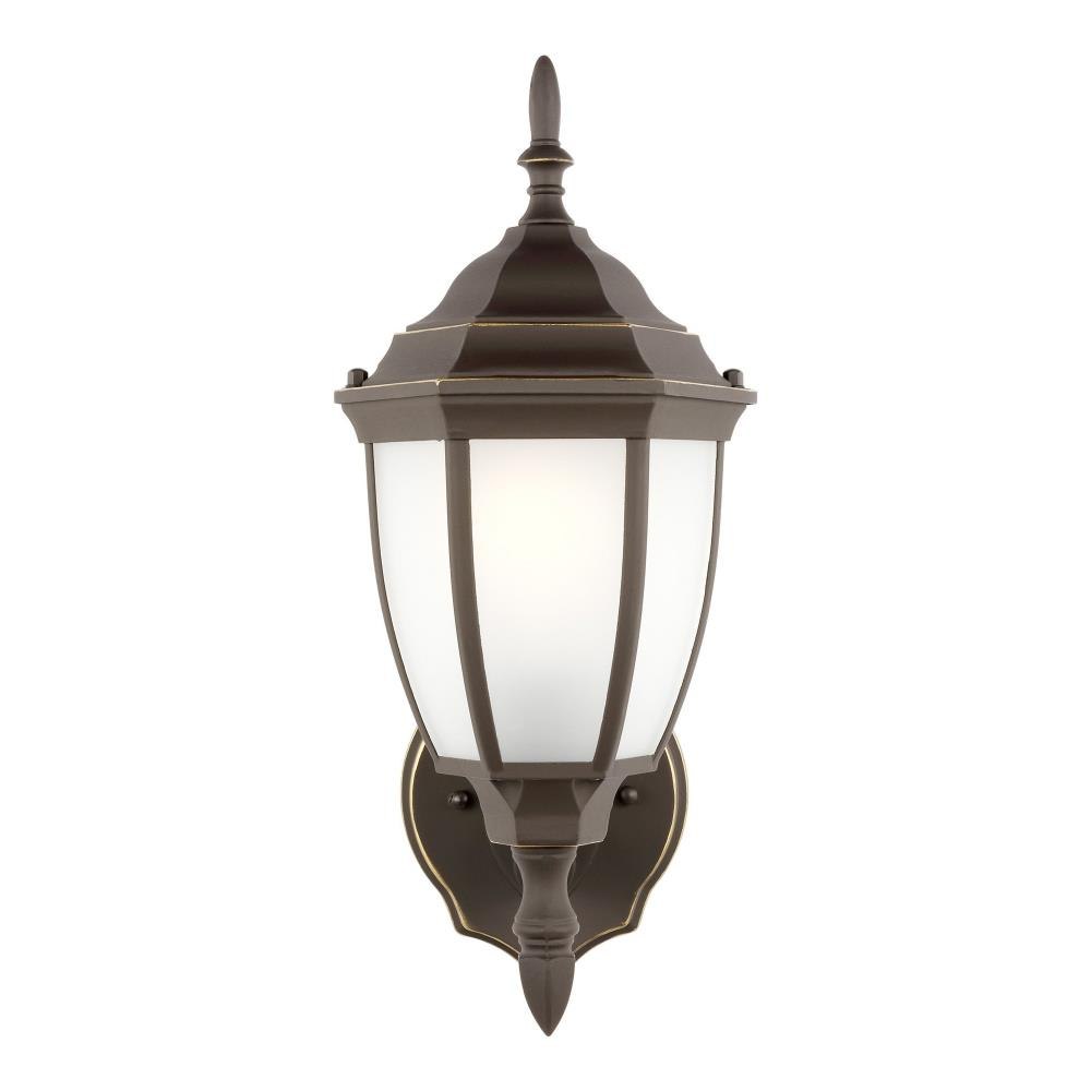 The Bakersville one light outdoor wall fixture in antique bronze creates a warm and inviting welcome presentation for your home's exterior. Bakersville outdoor lighting fixtures from are made to complement a wide range of architectural styles. Each light is crafted from high quality, durable steel and aluminum to provide you sensible style that lasts. The large, 1-light outdoor wall lantern is offered in Heirloom Bronze with Satin Etched glass or Clear Beveled glass. The remaining assortment of wall lanterns in three sizes and a Flush mount ceiling fixture are offered in a Black Powder coat finish with Satin Etched glass (with ENERGY-STAR-qualified LED lamping options) or Clear Beveled glass (which can easily convert to LED by purchasing LED replacement lamps sold separately).