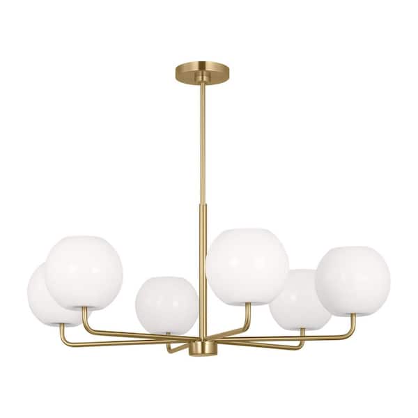 Rory Large 35 in. 6-Light Satin Bronze Chandelier with Opal Glass Shades