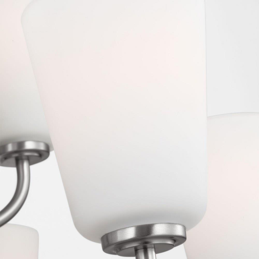 • Brushed Nickel with etched white glass shades