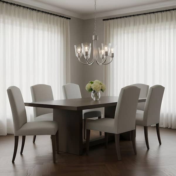 Miles 5-Light Brushed Nickel with Clear Glass Shades Transitional Dimmable Chandelier
