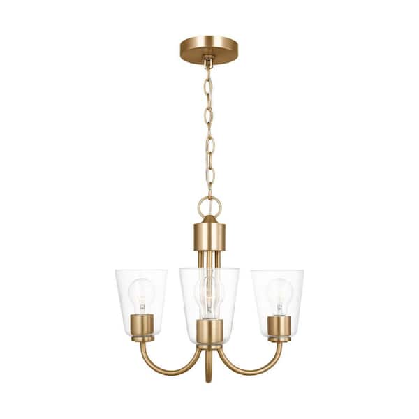Miles 3-Light Satin Brass with Clear Glass Shades Transitional Dimmable Chandelier