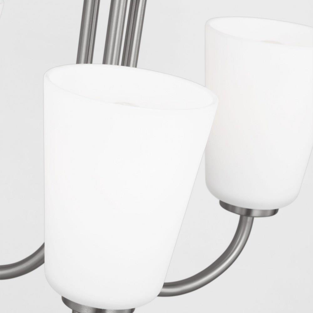 • Brushed Nickel with etched white glass shades
