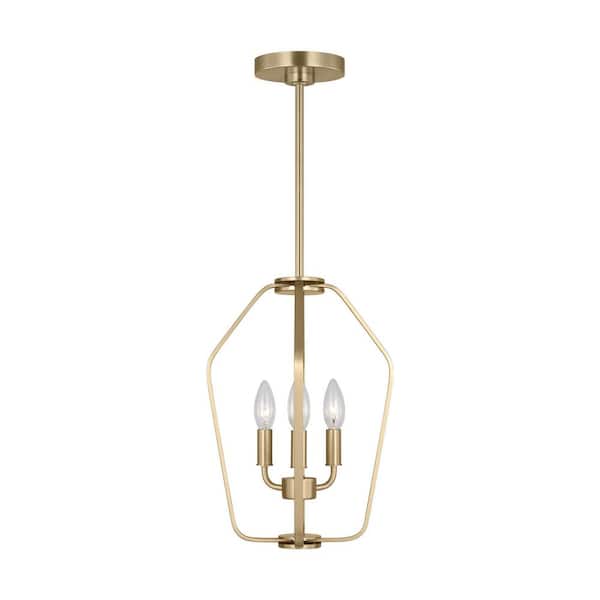 Kennan 3-Light Satin Brass Transitional Dimmable Lantern Chandelier