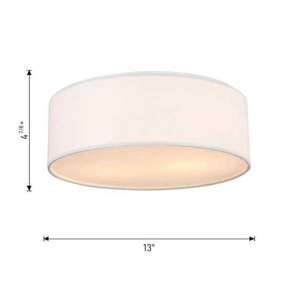 Larson Small 13 in. 2-Light Matte White Modern Flush Mount with White Linen Fabric Shade