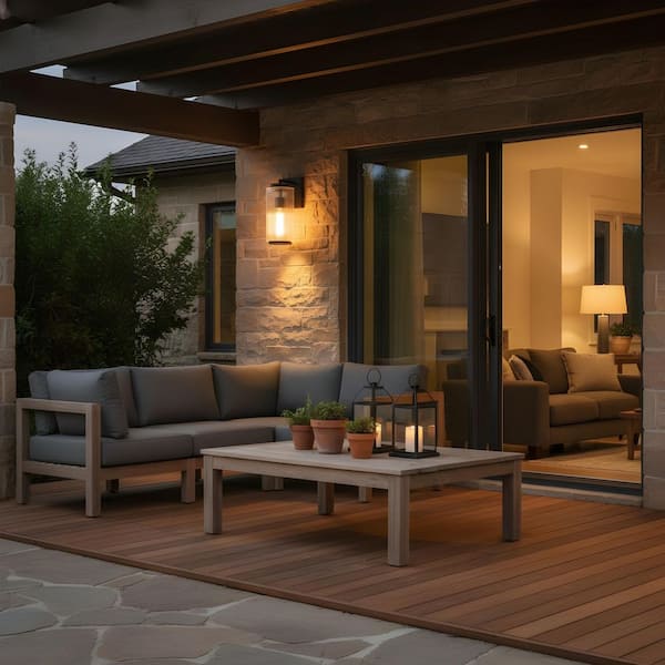 • Contemporary outdoor wall lantern with textured glass