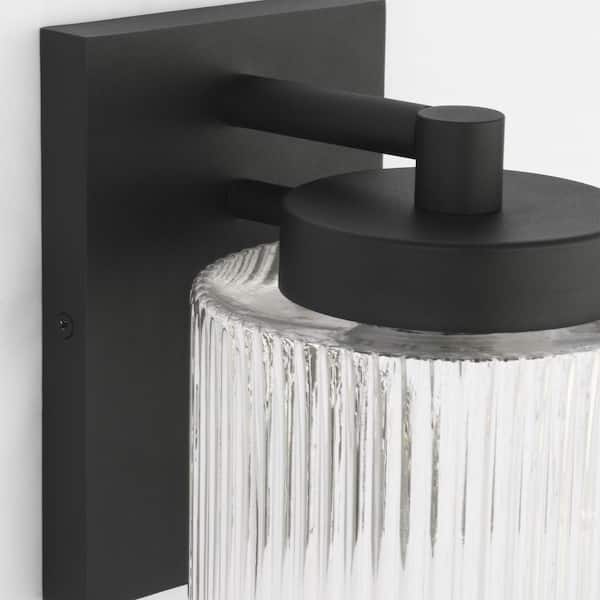Ronde Large 18 in. Textured Black Outdoor Hardwired Wall Lantern Scone with Integrated LED and Clear Ribbed Glass Shade