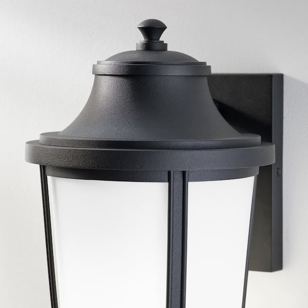 Portola Medium Textured Black Traditional Outdoor Hardwired Lantern Sconce with Etched White Glass, No Bulb Included