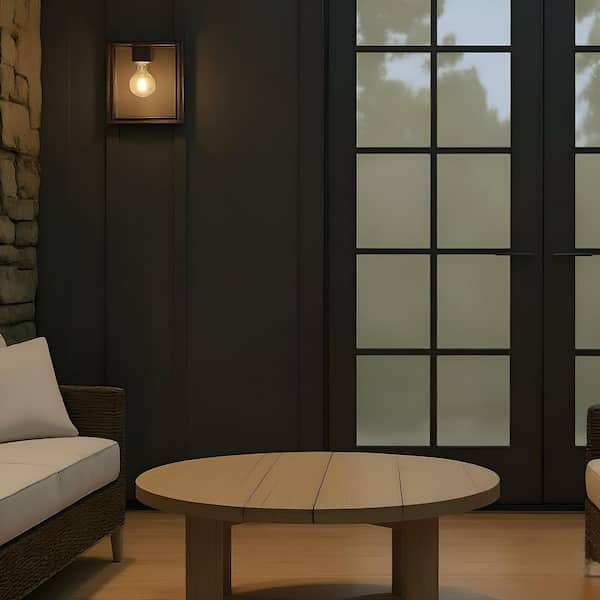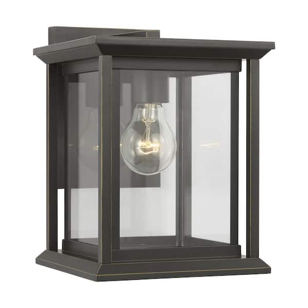 Audley 10 in. Antique Bronze with Clear Glass Panels Outdoor Hardwired Lantern Sconce with No Bulbs Included