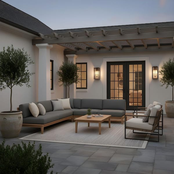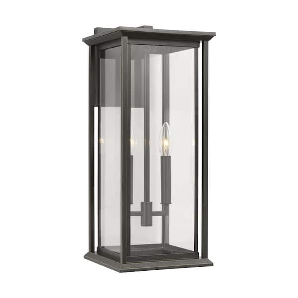 Audley 20 in. Antique Bronze with Clear Glass Panels Outdoor Hardwired Lantern Sconce with No Bulbs Included