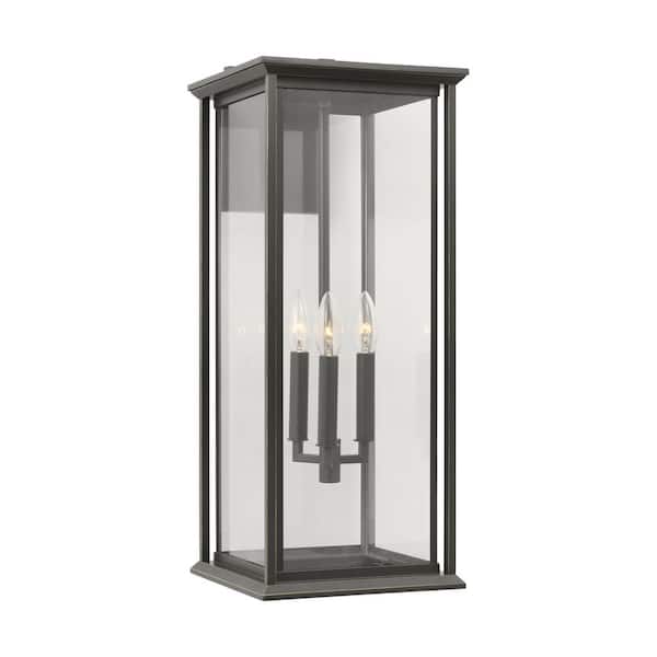 Audley 24in. Antique Bronze with Clear Glass Panels Outdoor Hardwired Lantern Sconce with No Bulbs Included