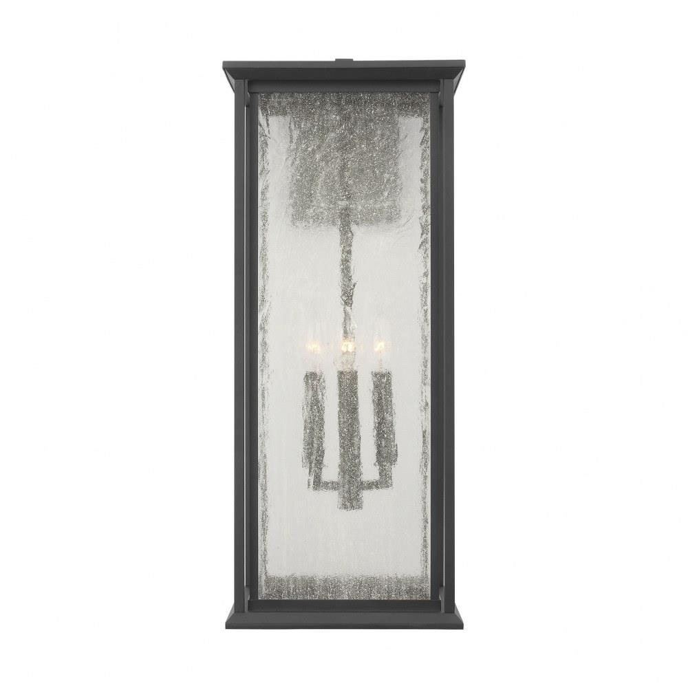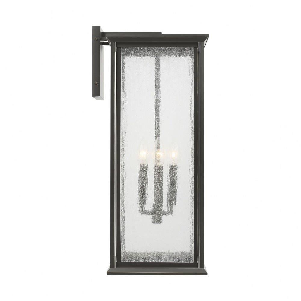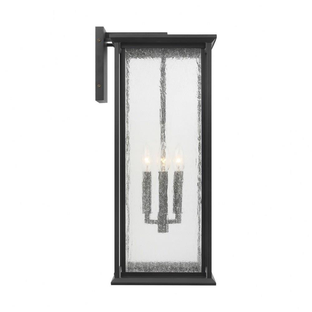 With a focus on durable materials and elegant design, the Audley Wall Lantern collection enhances outdoor living with its versatile appeal. Its crisp metal framework encases seeded or clear glass panels, softly diffusing light while creating a sophisticated atmosphere. The collection includes three sizes with single suspended bulbs and an extra-large version featuring three candle-inspired lights, each offering timeless style and reliable performance. Finished in Textured Black and wet-rated for outdoor use, the lanterns also include an optional Dark Sky feature to reduce glare and minimize light pollution, making them a smart, stylish choice for porches, patios, and entryways.