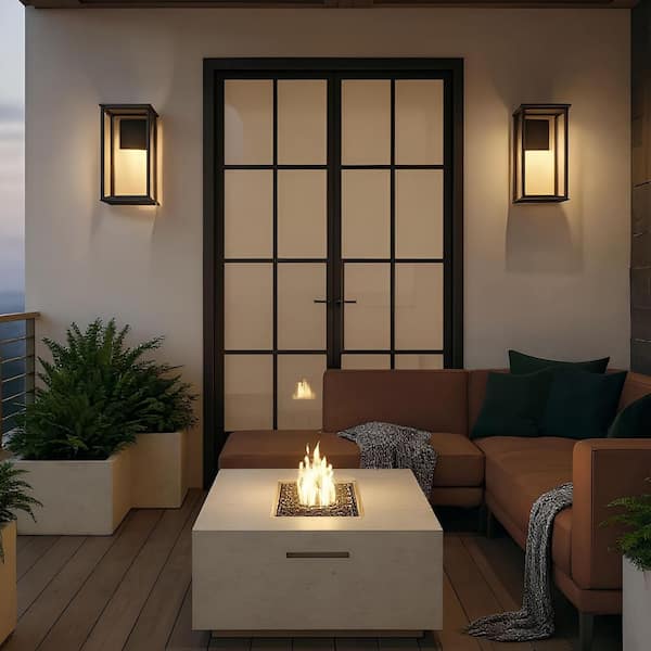 Audley 15in. Antique Bronze with Clear Glass Panels Outdoor Hardwired Lantern Sconce with Integrated LED