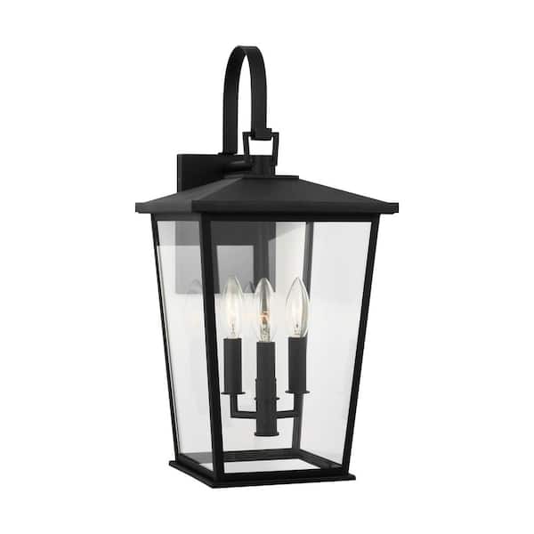 Linton 9.75 in. W x 20.25 in. H Textured Black Outdoor Hardwired Dimmable Wall Lantern Sconce with No Bulbs Included