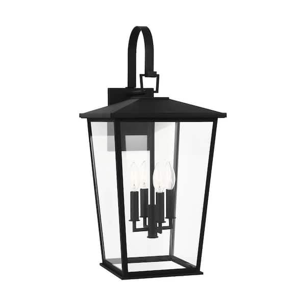Linton 12 in. W x 25.625 in. H Textured Black Outdoor Hardwired Dimmable Wall Lantern Sconce with No Bulbs Included